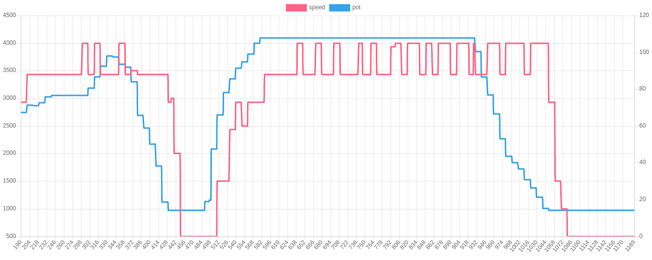 Three observations: 1) The motor is SMOOOTH, 2) DC Current limit works WELL, 2) The VCU thinks DC current is about double what the meter does.