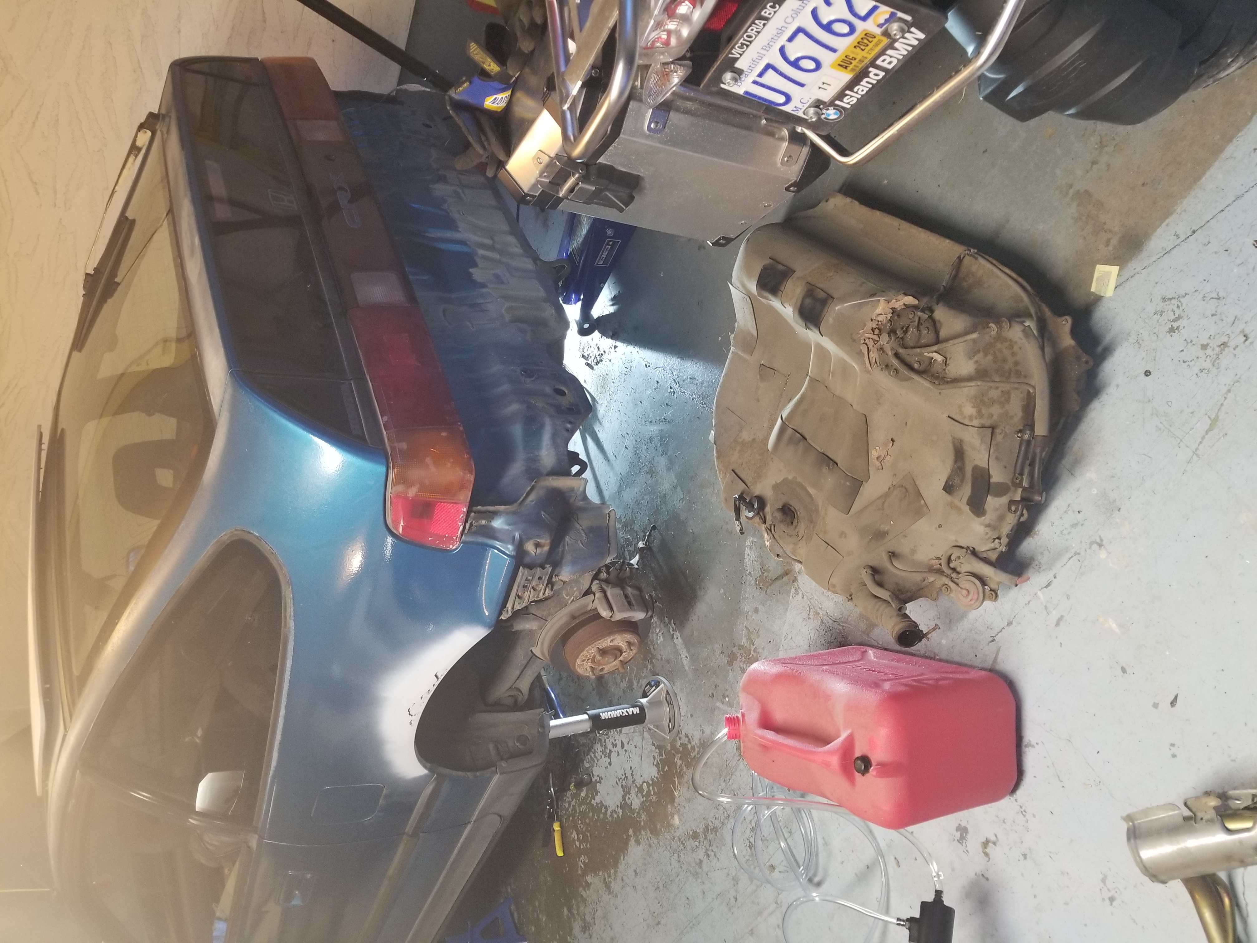 Happy to say a tesla unit would just squeeze between the main lower control arm pickup points. I scoured car-part.com for wrecked teslas and called yards all over North America looking for a reasonable price on a drive unit and got to work prepping the car.