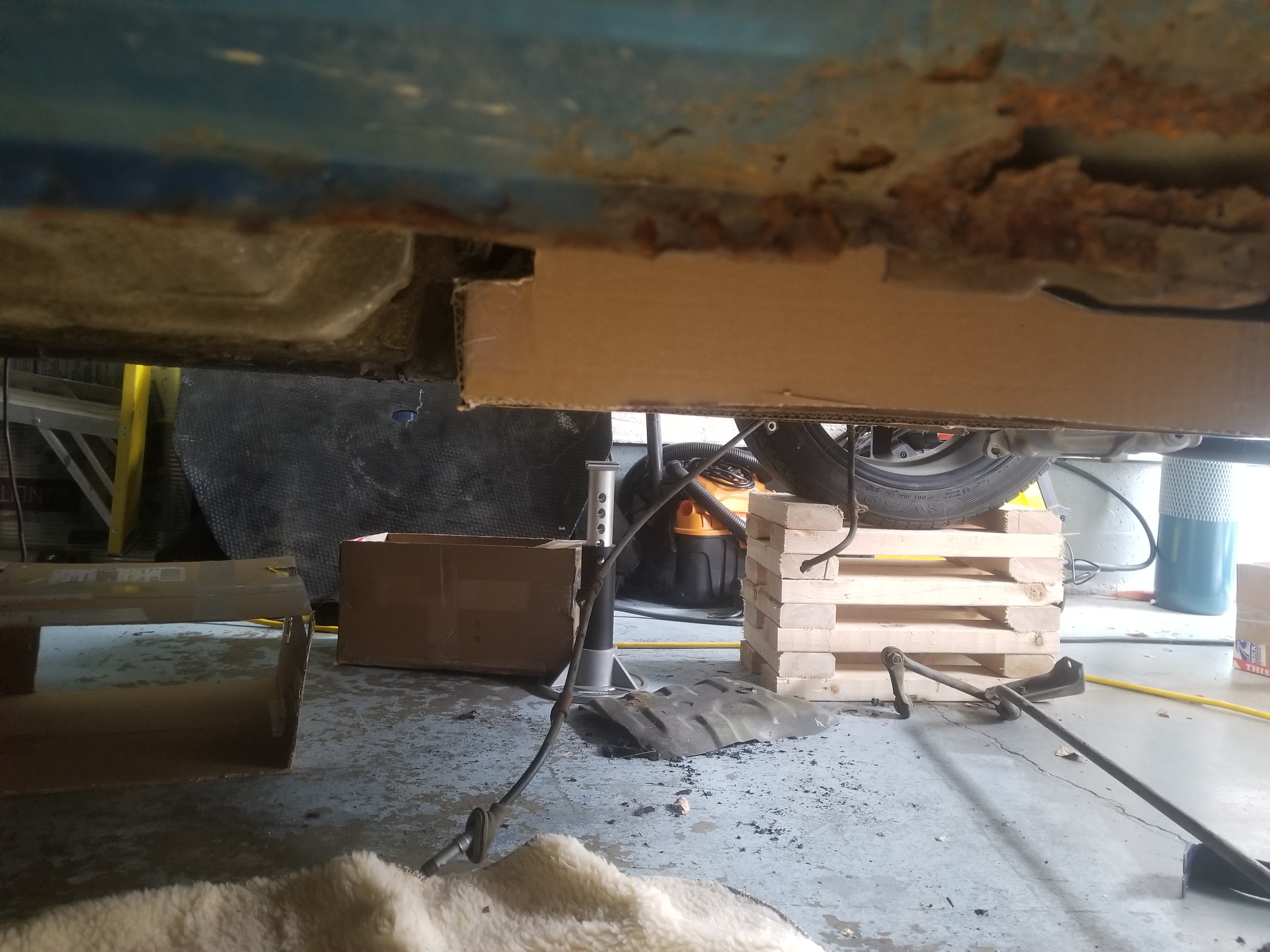 A cross brace was tacked in to add structure and the spare tire well an most of the stock crossmember were cut away
