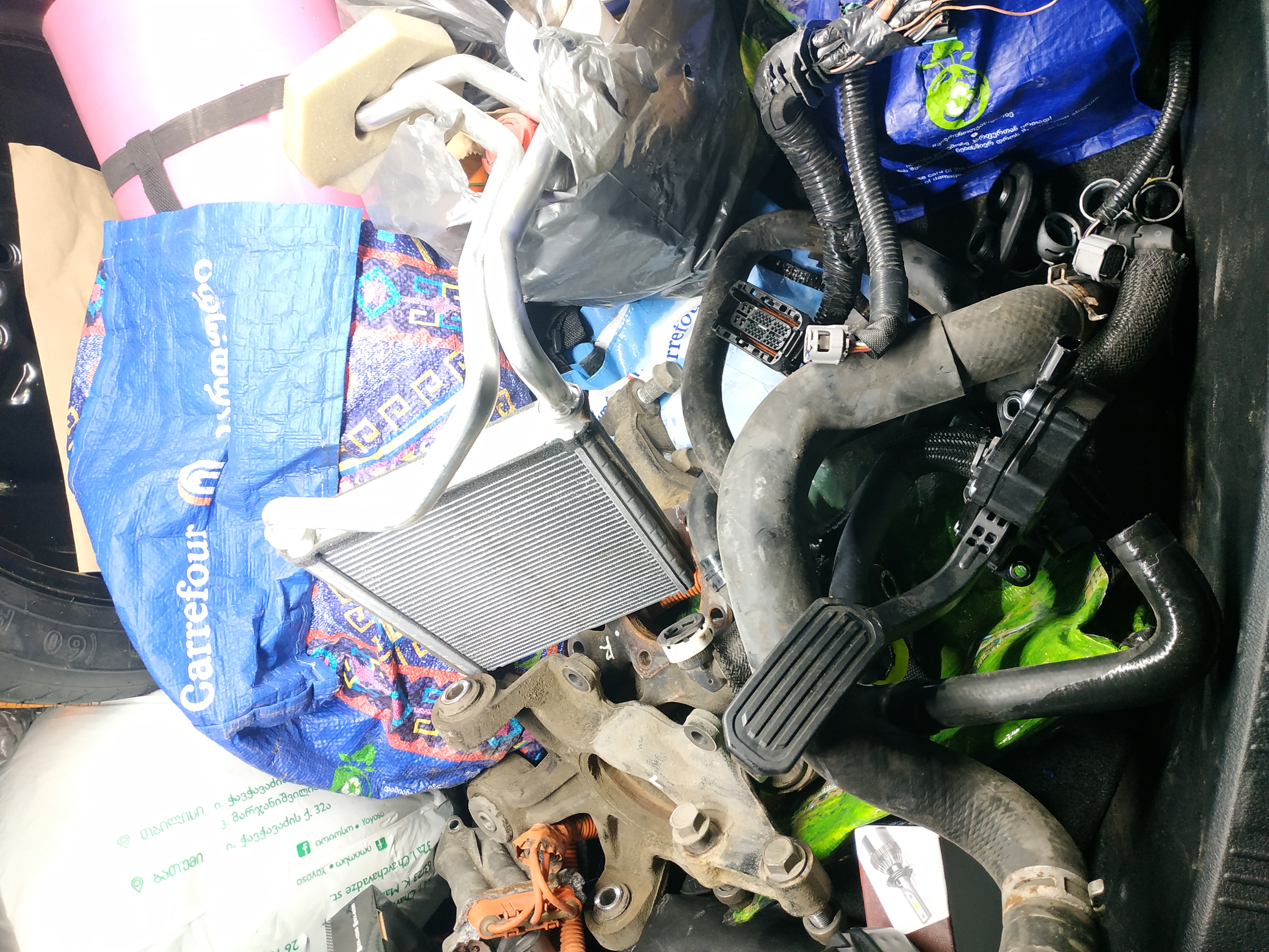 I returned my Toyota Avalon inverter back for disassembly, changed it to the cooling pipes, radiator, pump and gas pedal. I bought the Yaris 3 board. I redid the muffler better turns. I started putting up wires. I free up space under the front hood for the Yaris inverter, transfer the neck of the washer, on the rubber nozzle and clips, transfer the tanks and the pump motor of the invertor1 hybrid. There's just enough space for a second inverter. I'll put it on a separate radiator and a separate pump. Who will tell you the pump is connected by the sensor, or always when the inverter is turned on? Is there an electrical circuit or an explanation from someone? Photo later.