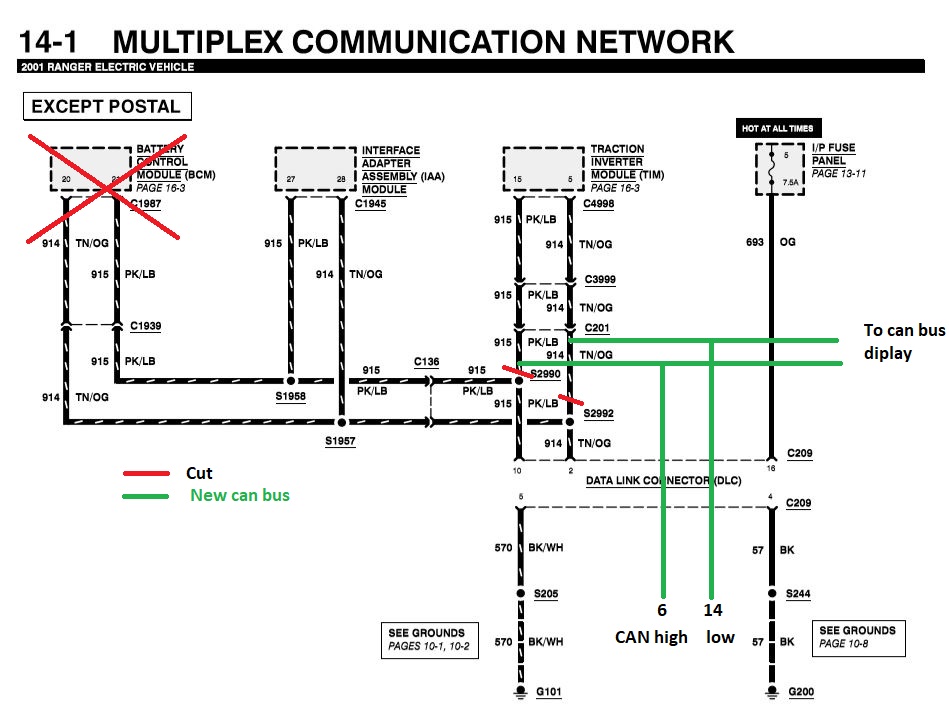 If you cut it here you can access/diagnose IAA module from the OBD (DLC) port and from your new BMS.