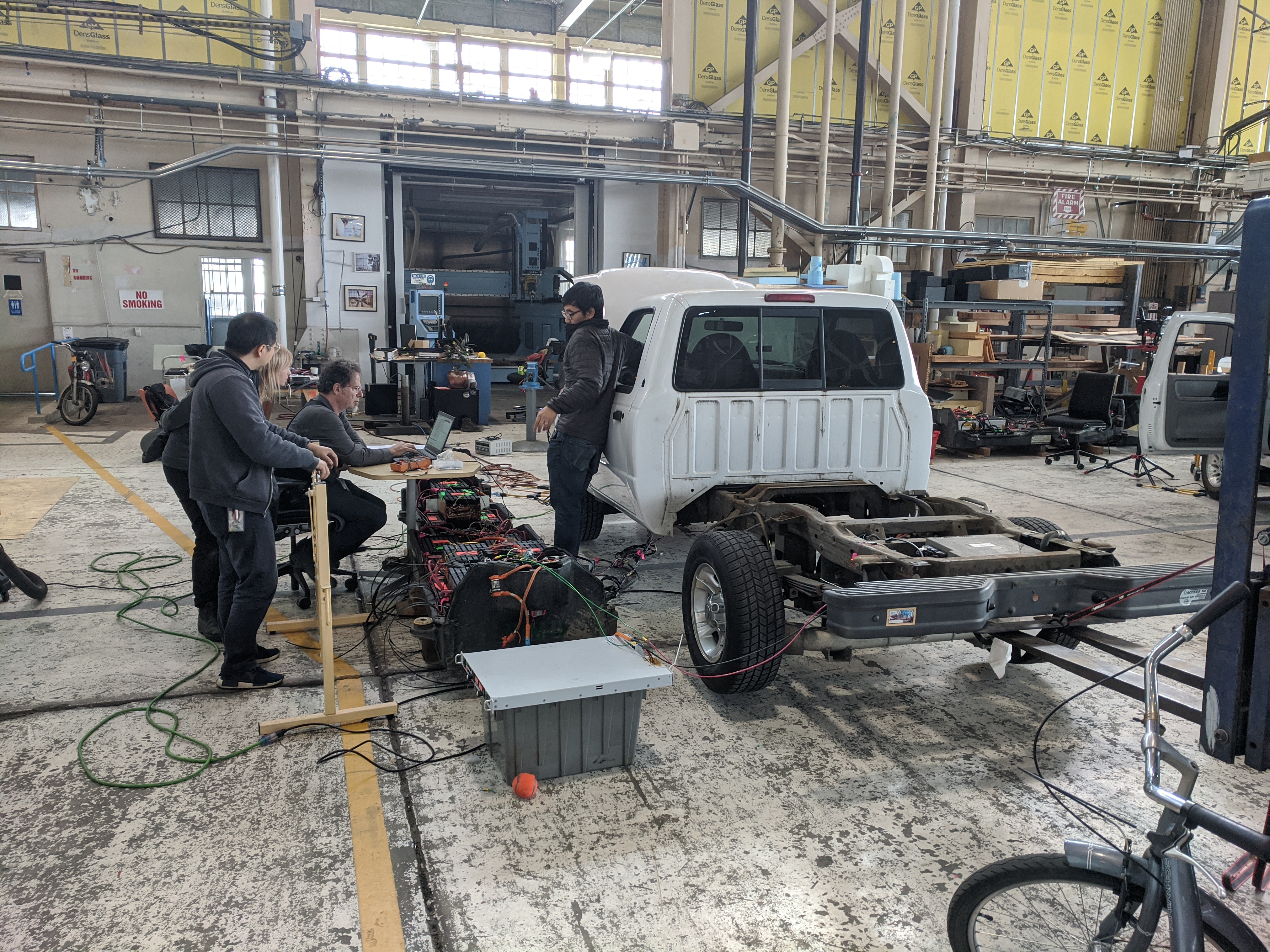 - With the brake depressed, we can shift into drive and see that the inverter begins switching and delivering some current to the motor. This was visible in the web interface and we verified using current meters on an oscilloscope (the 8.8kHz switching frequency was visible).