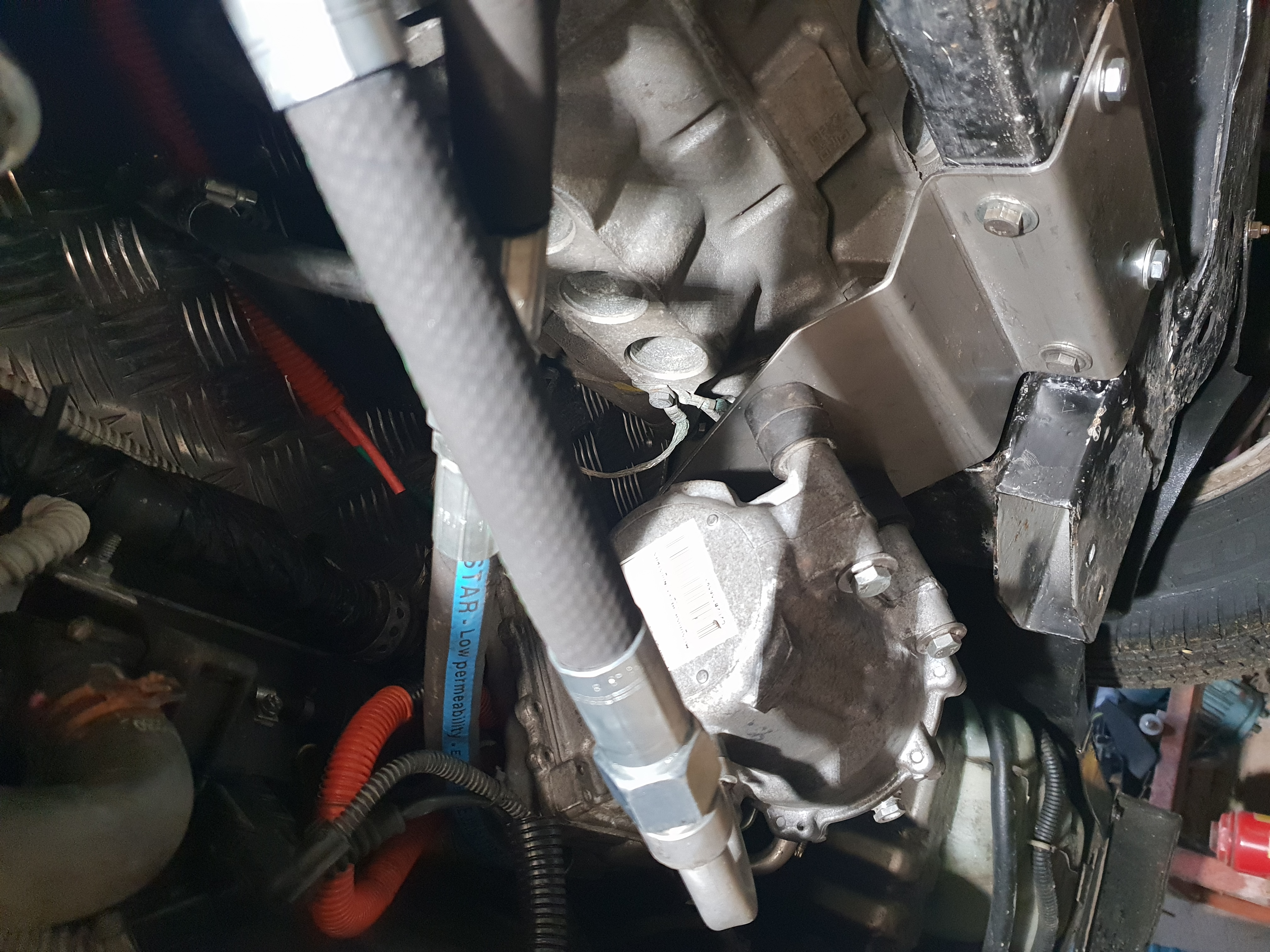 I will take a photo when i need to go under the car. Its not easy because i added 1.5mm alu panel on the underside to protect compressor and steering pump from debris and maybe get some drag reduction.