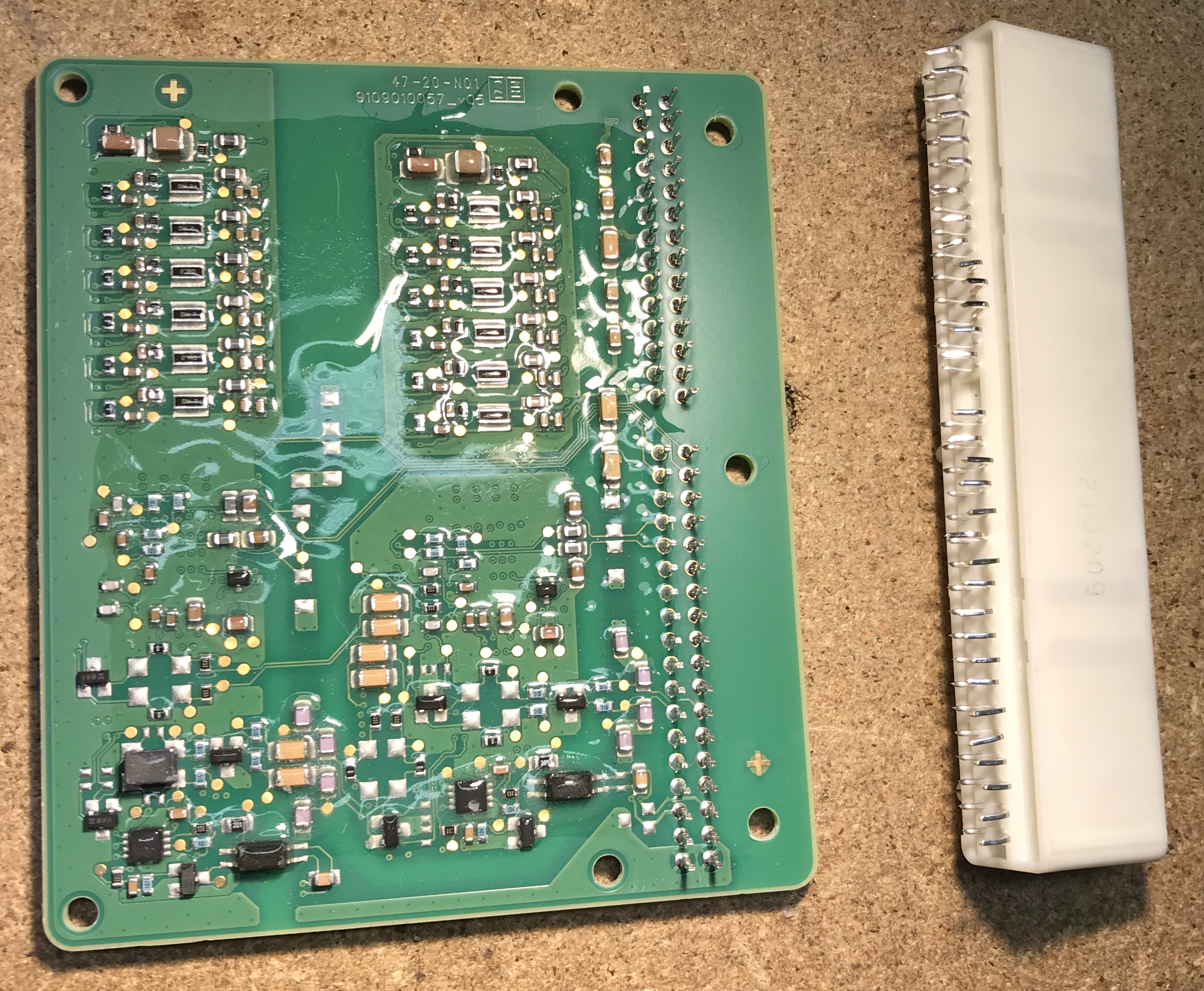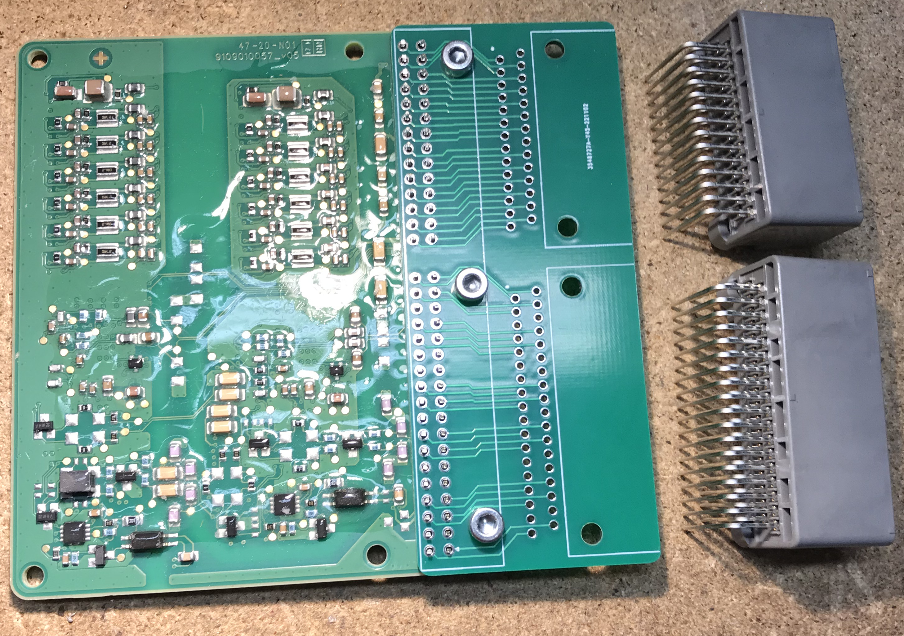 I have made an adapter board for the connector on the E-niro BMS slave modules. I don't like pigtail wiring join mid-wire but rather connectors that can be bought with new crimp pins for neat wiring harnesses. In order to do so for the slave modules the connectors need to be replaced, hence my adapter boards. This mod makes the slave board 20mm longer and a few mm higher.