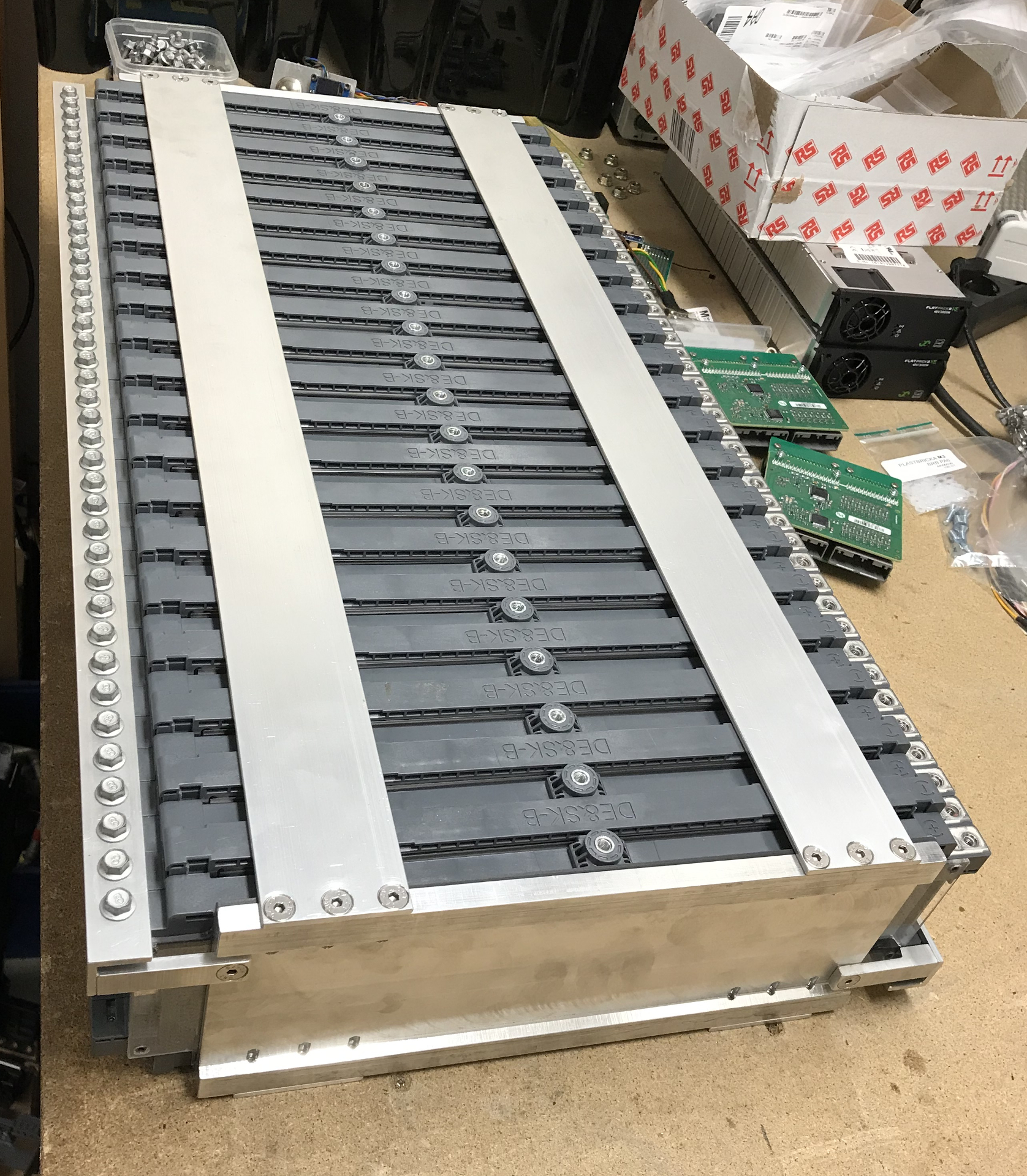 Both modules are done even though the pictures only show one, 40S in each. Weight is just shy of 44kg per module.