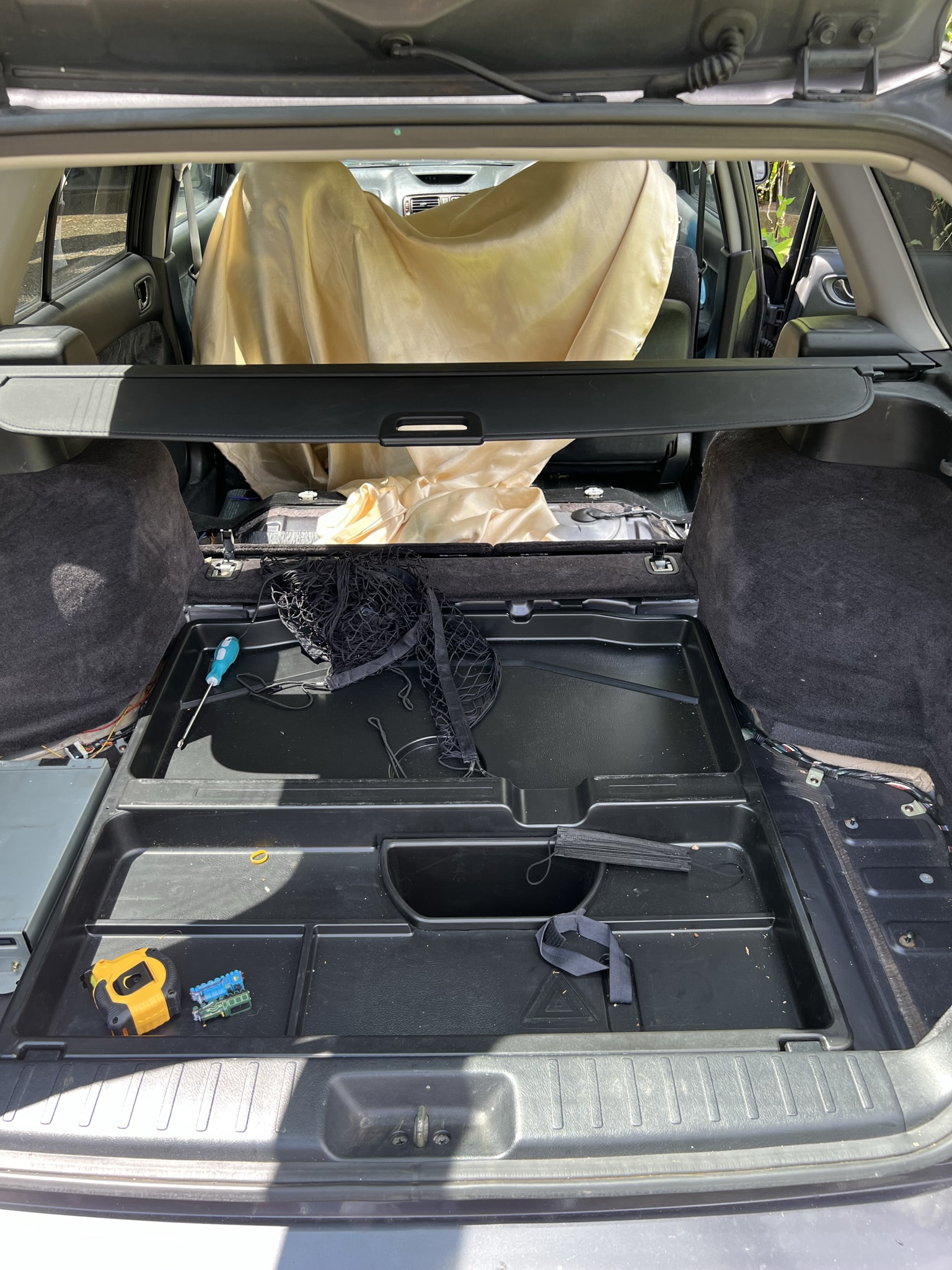 Spent most of the day cleaning and junking items in the garage to prepare for some tools and the em57 next week. Also took some time to begin removal of some interior things like tray cover, compartments, and rear seats.