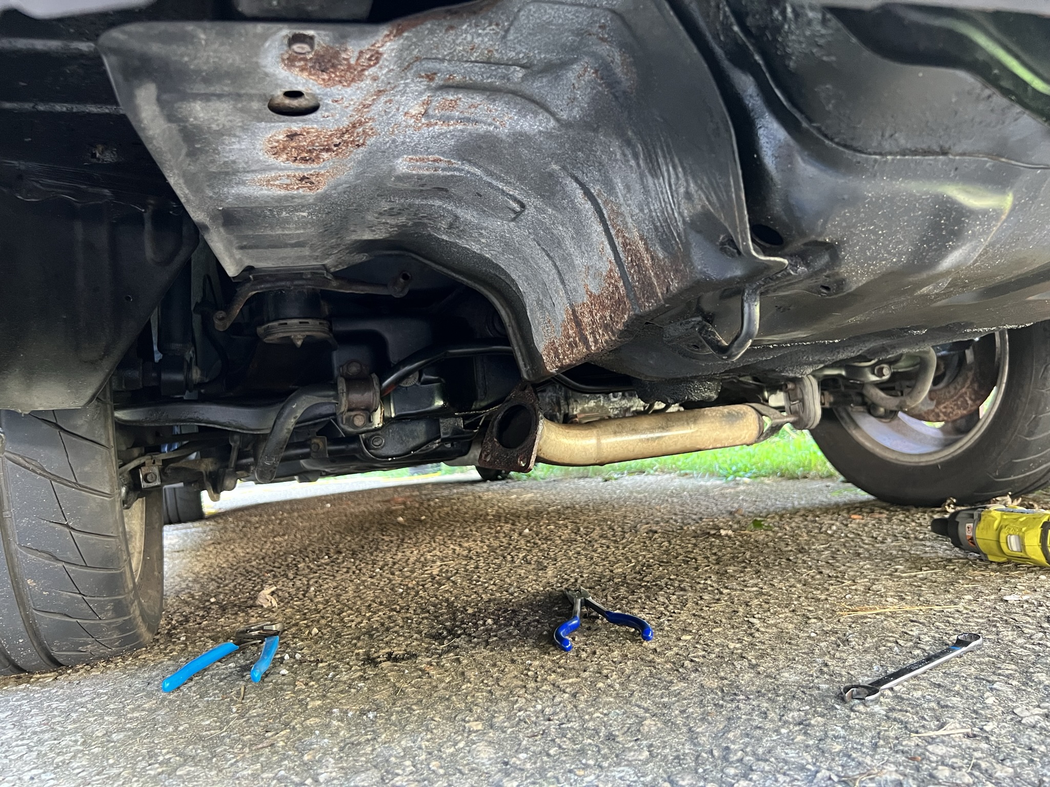 So, broken bolts but I did get the muffler off. Good ol' 26 year old stuck bolts.