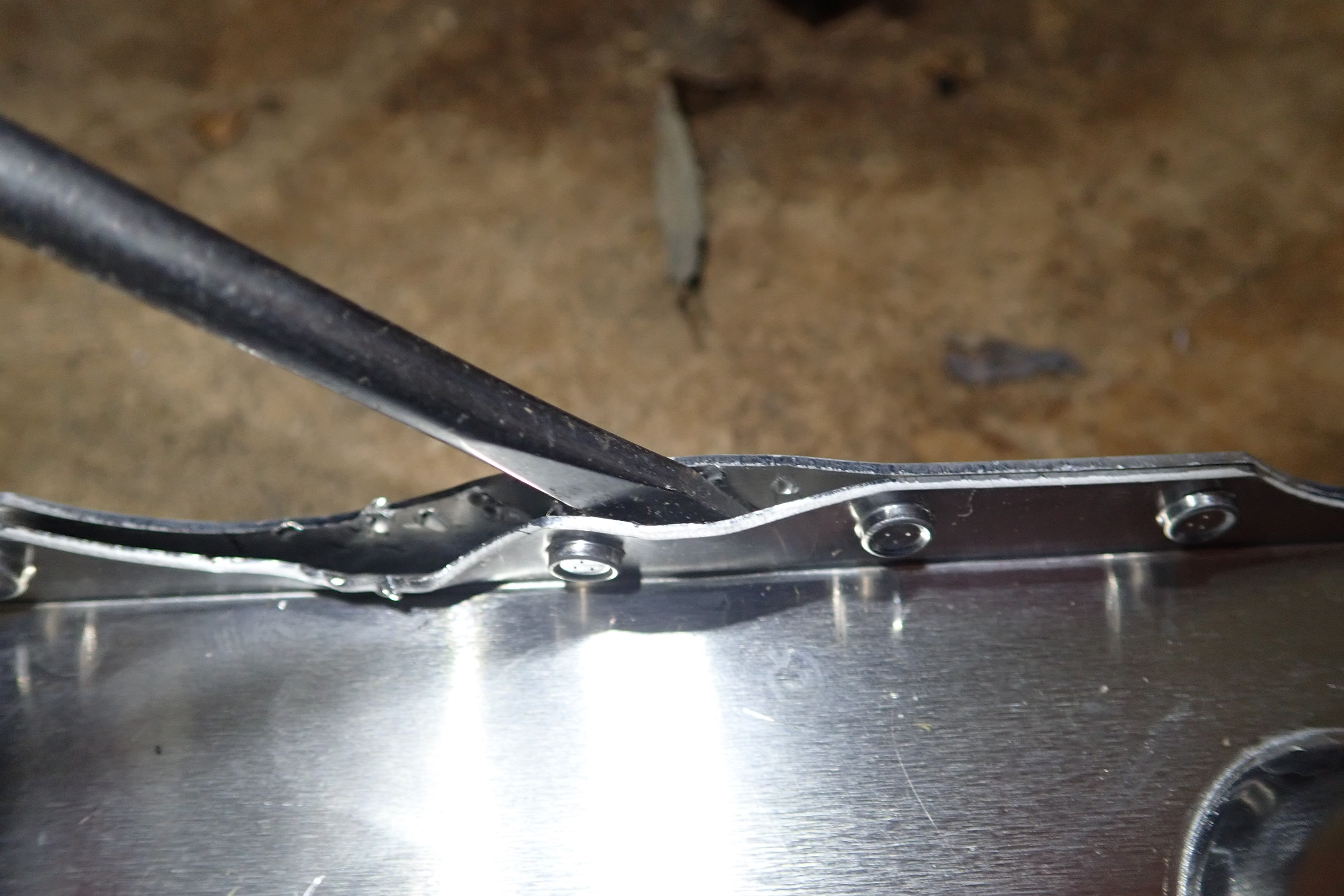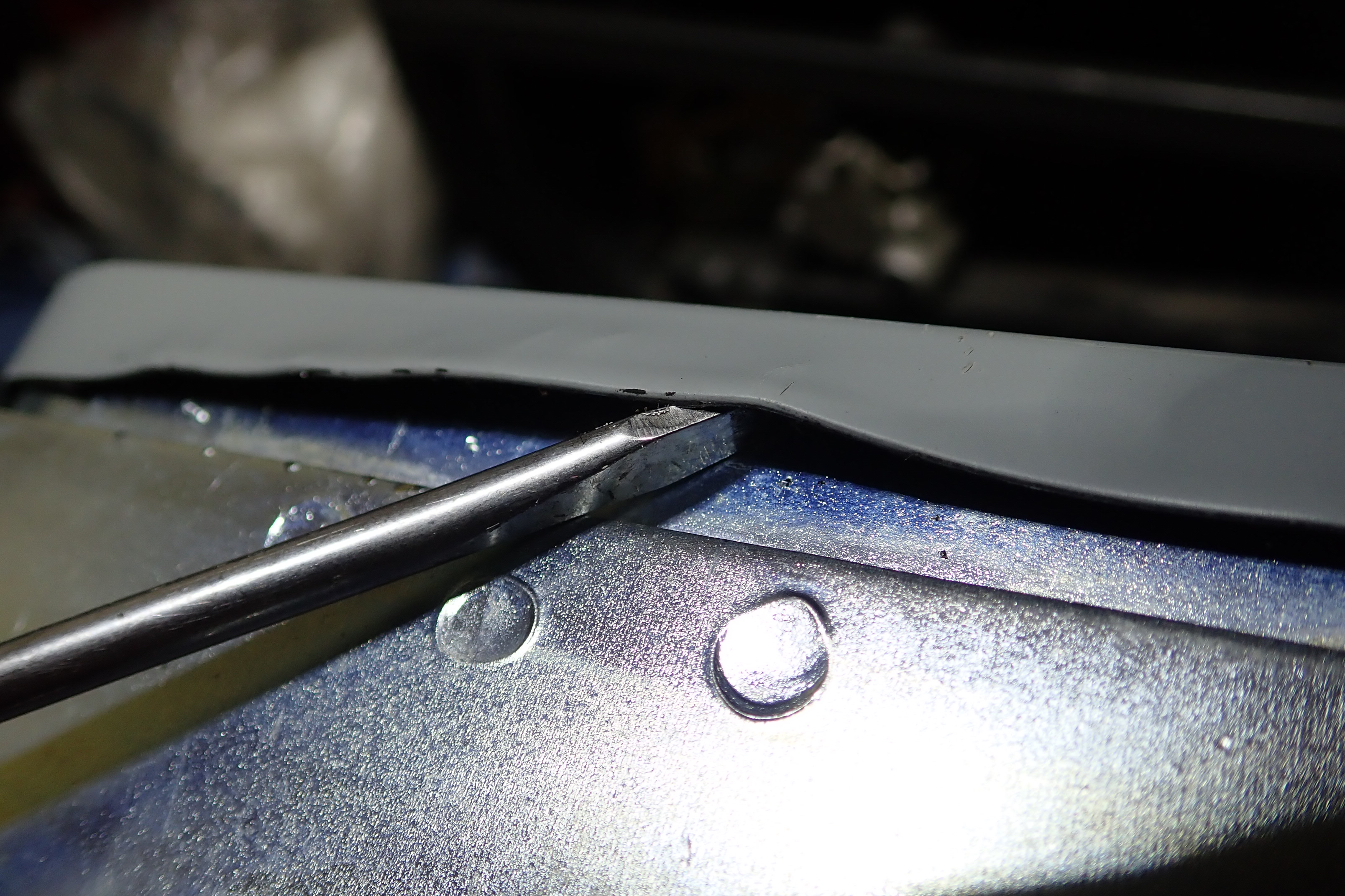 Cutting the bonded rubber (polyurethane based?) seal.
