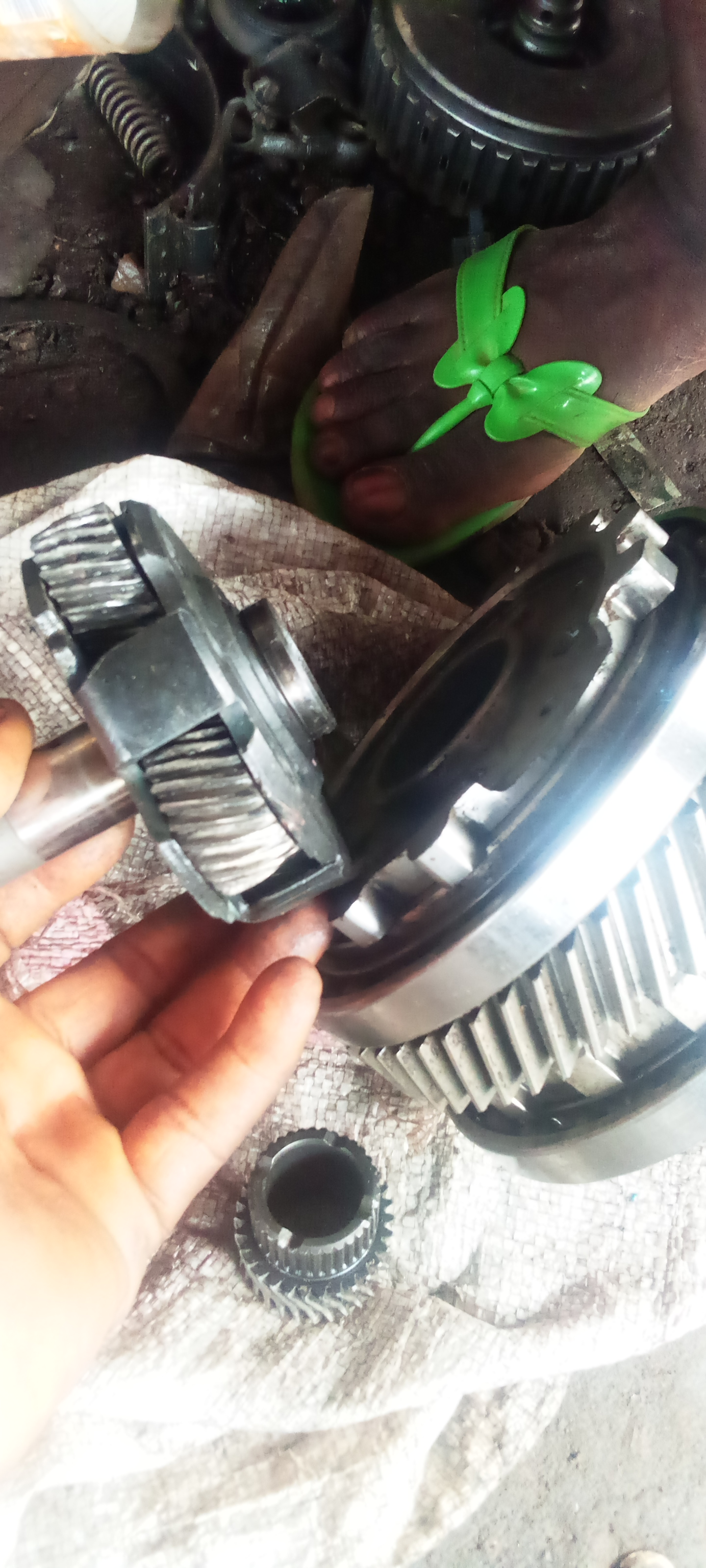 Initially, we thought the noise was coming from the engine. Engine was removed and disassembled to investigate if there were maybe spurn connecting rod bearings, etc. But nothing suspicious was found. Reinstalled the engine, READIED ON the vehicle. And immediately the ICE came on, we noticed the noise was somehow from the transmission. We suspected it to be as a result of a fault input damper, we replaced, but did not solve the noise. On dismantling the transxle, in order to diagnose it, we discovered that this bearing, probably affixed to the planetary unit, was bad.