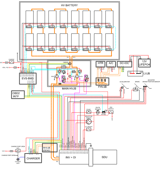 So I started with a concept diagram that looks like this to get my head around things: And then over the past few weeks while swopping out the inverter control board (what a pain those SDU current sensors are!) I have been working on a main wiring diagram which at present looks like this (I attached the larger PDF if you want to have a look): I still have a bunch of work to do on this so it's still in DRAFT stage but its getting there - lots of people on this forum have really helped me a lot so far to figure things out - and also hrs and hrs of trawling