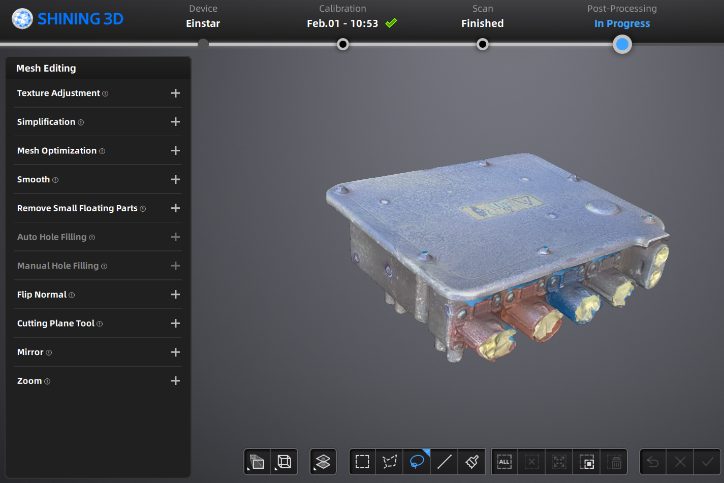 - so now I'm slowly learning how to use the thing - here's a gen 1 Tesla front HV JB scanned with an Einstar Shining 3D scanner: