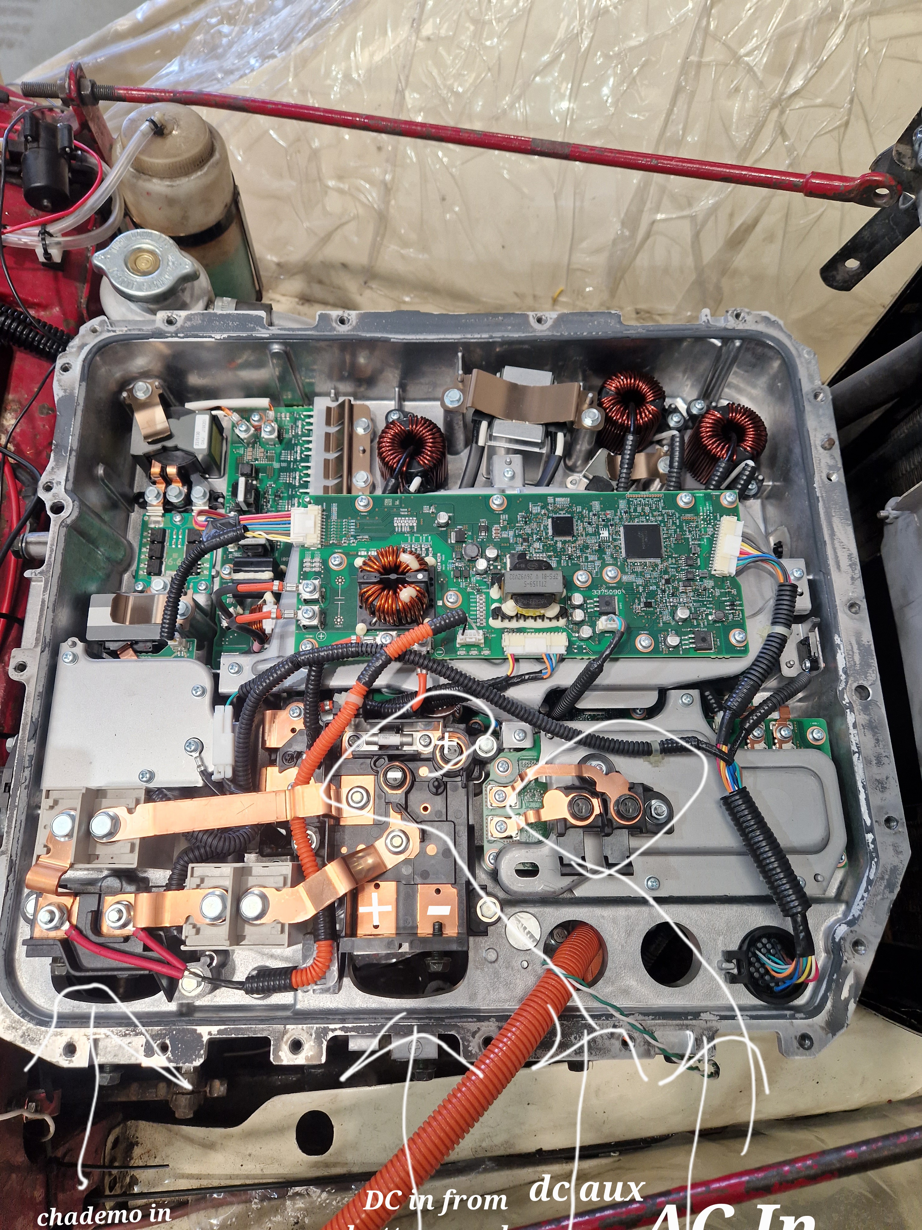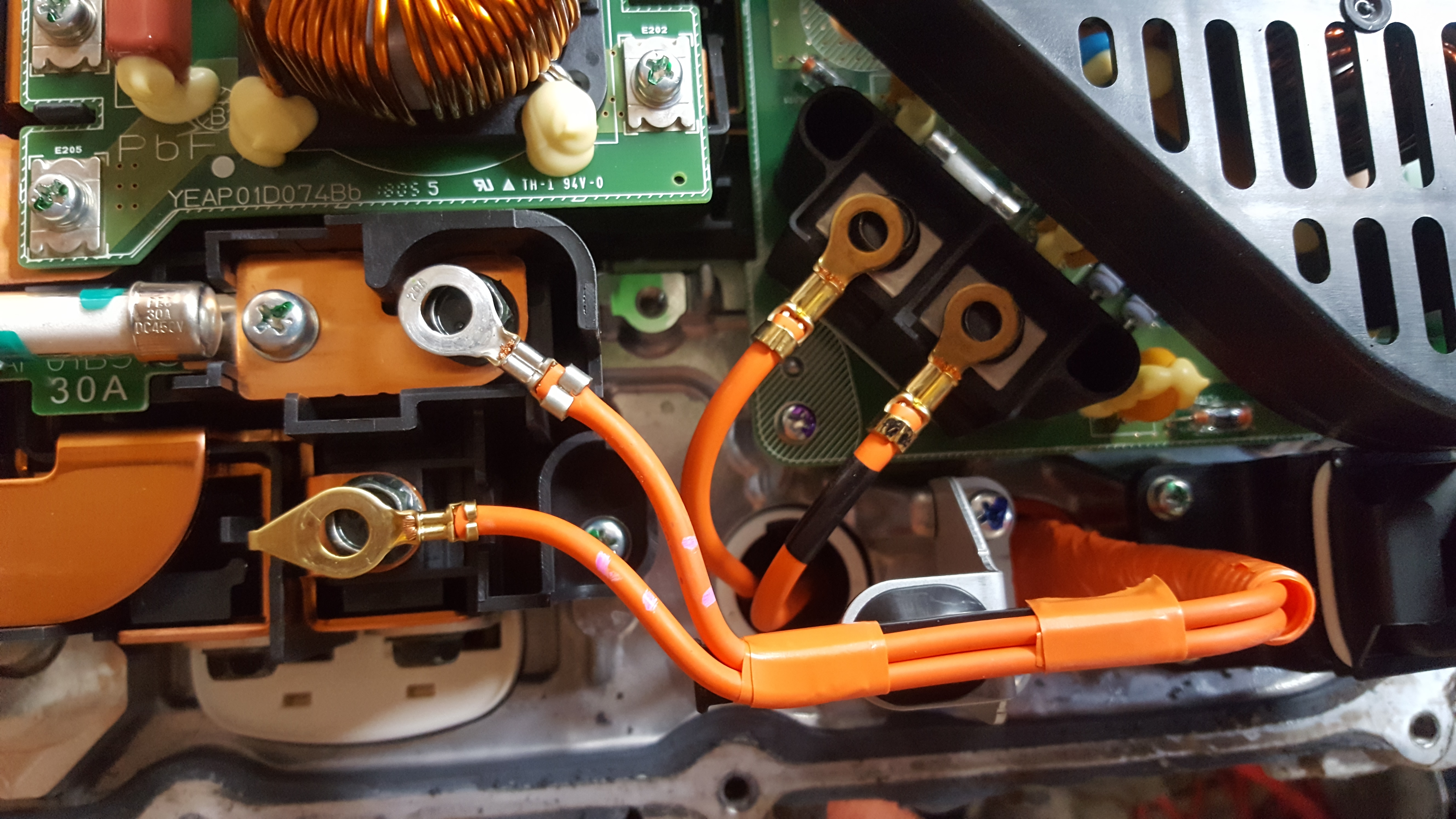 The wire with the black tape (in the picture) connects to L1 on the type 2 charge connector. The polarity of the AC connection should not matter really, unless the PDM does an continuity check between PE and neutral, like Renault's do.