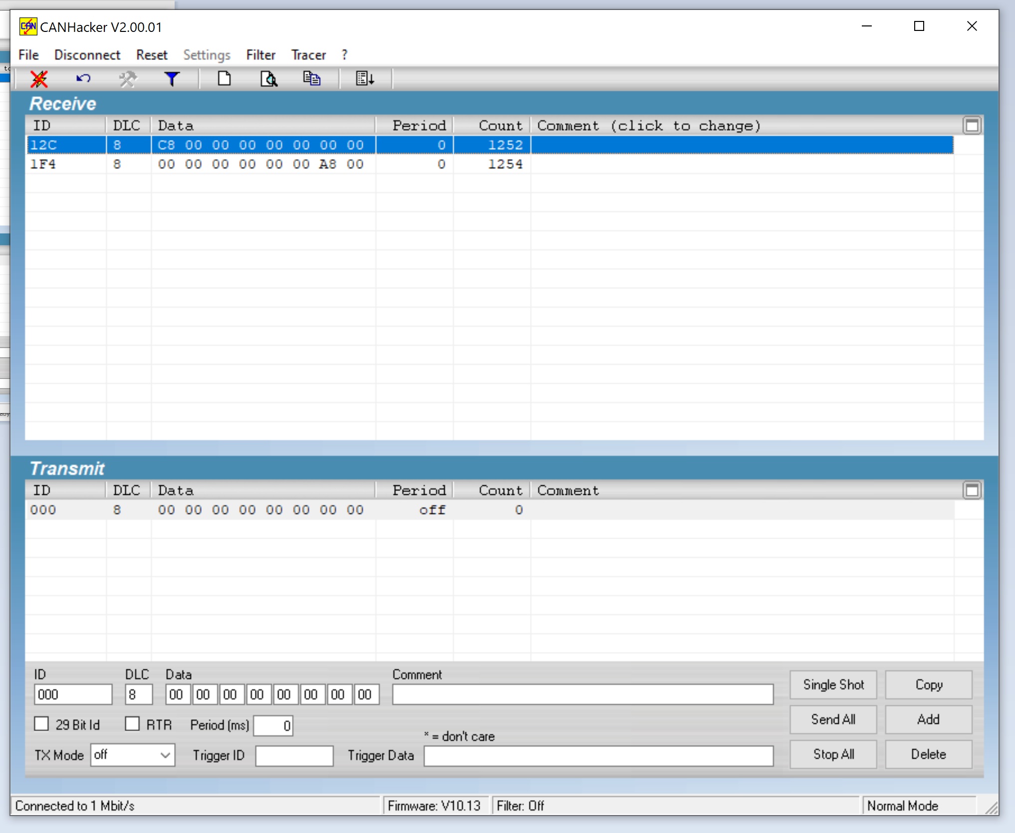 Go to settings, set proper port, the same used in arduino IDE. Now it should connect. Nothing shows up but when I bend pins on the MCP2515 dongle, random data appears. Make sure your connections are solid! Setting CAN baud rate to 1mb gives pic related. Did you knew It needed 1mb/s can baudrate? I sure as hell did not. I bed in reality nobody knows. Everybody makes their software with particular applications in mind and don't even think about such things. Openinverter_can_tool and SavvyCAN will not work for now but feel free to maketo install them and make it work. You will learn something from that. Who knew sitting in front of a computer screen for 4 days could give such awesome results