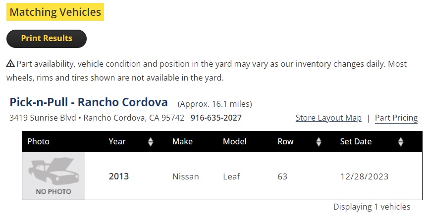 Newb Asks: Can We Find Nissan Leafs at Pick-n-Pull ?