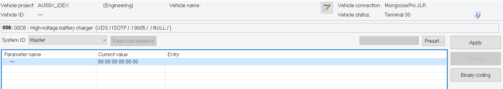 I can't get much from ODIS at all, it can connect and pull some data, but nothing like coding parameters etc.