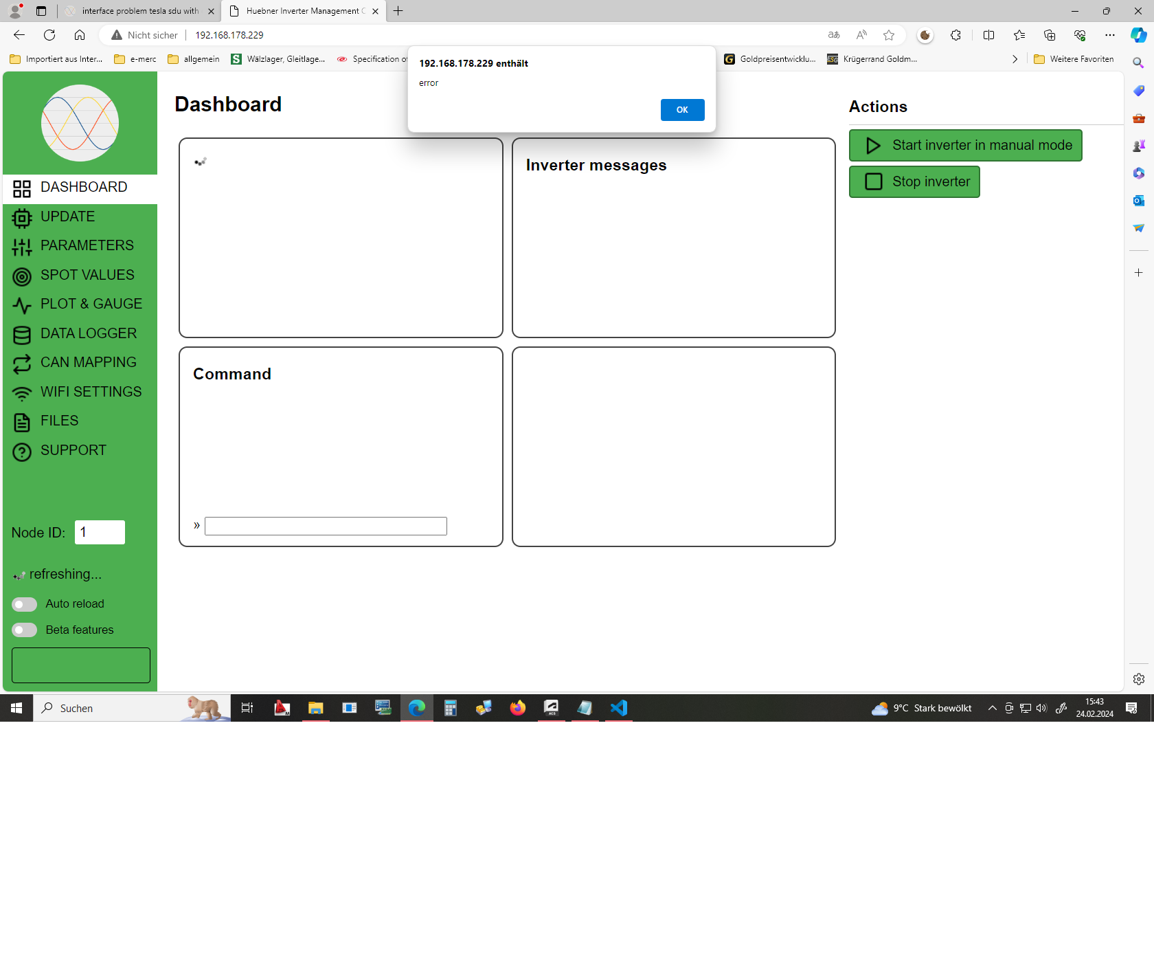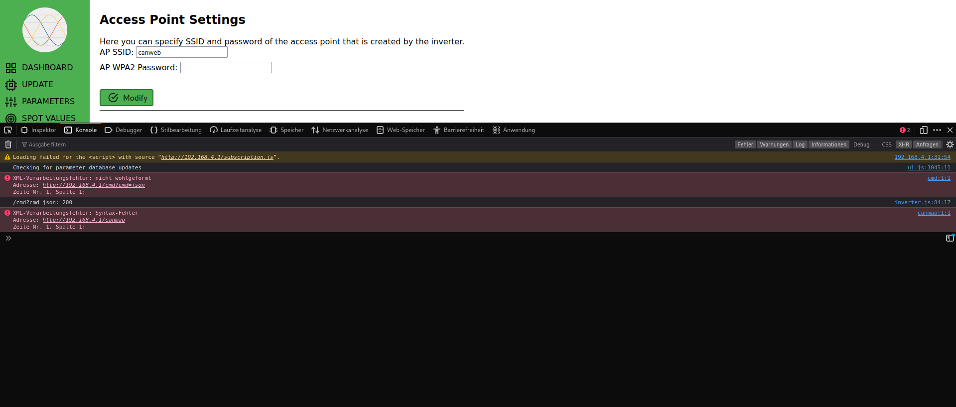 i already tried some things to find the cause. i checked the can bus with a scope and saw some signals so i guess the canbus is being used. to eliminate all distortion of the signals i tried to run a shielded 2-wire cable directly from the inverter to the esp32 module but this did not change anything.