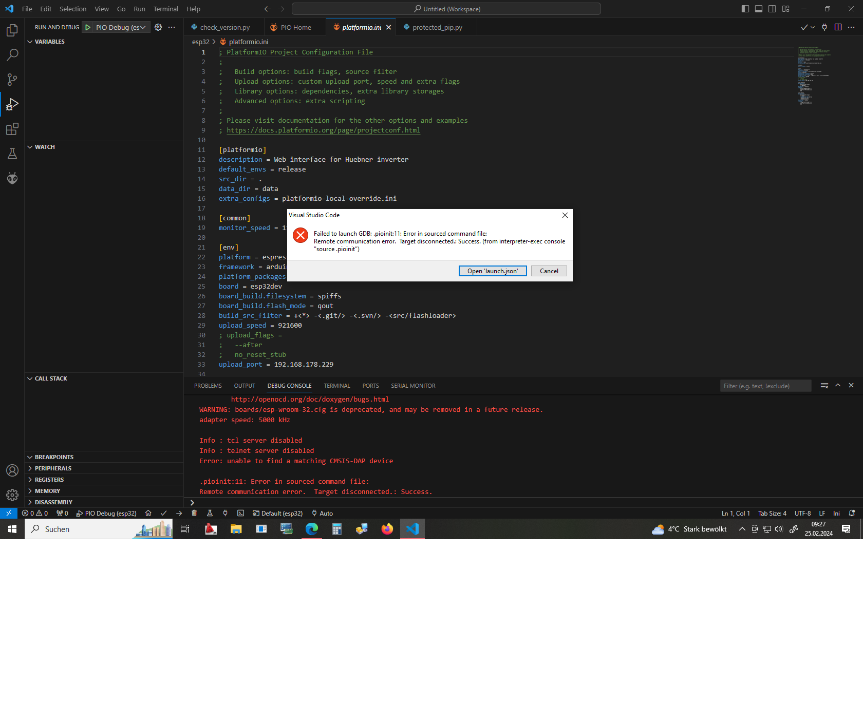 Could the solution be to download the paramlist from the inverter and upload this to the esp32?