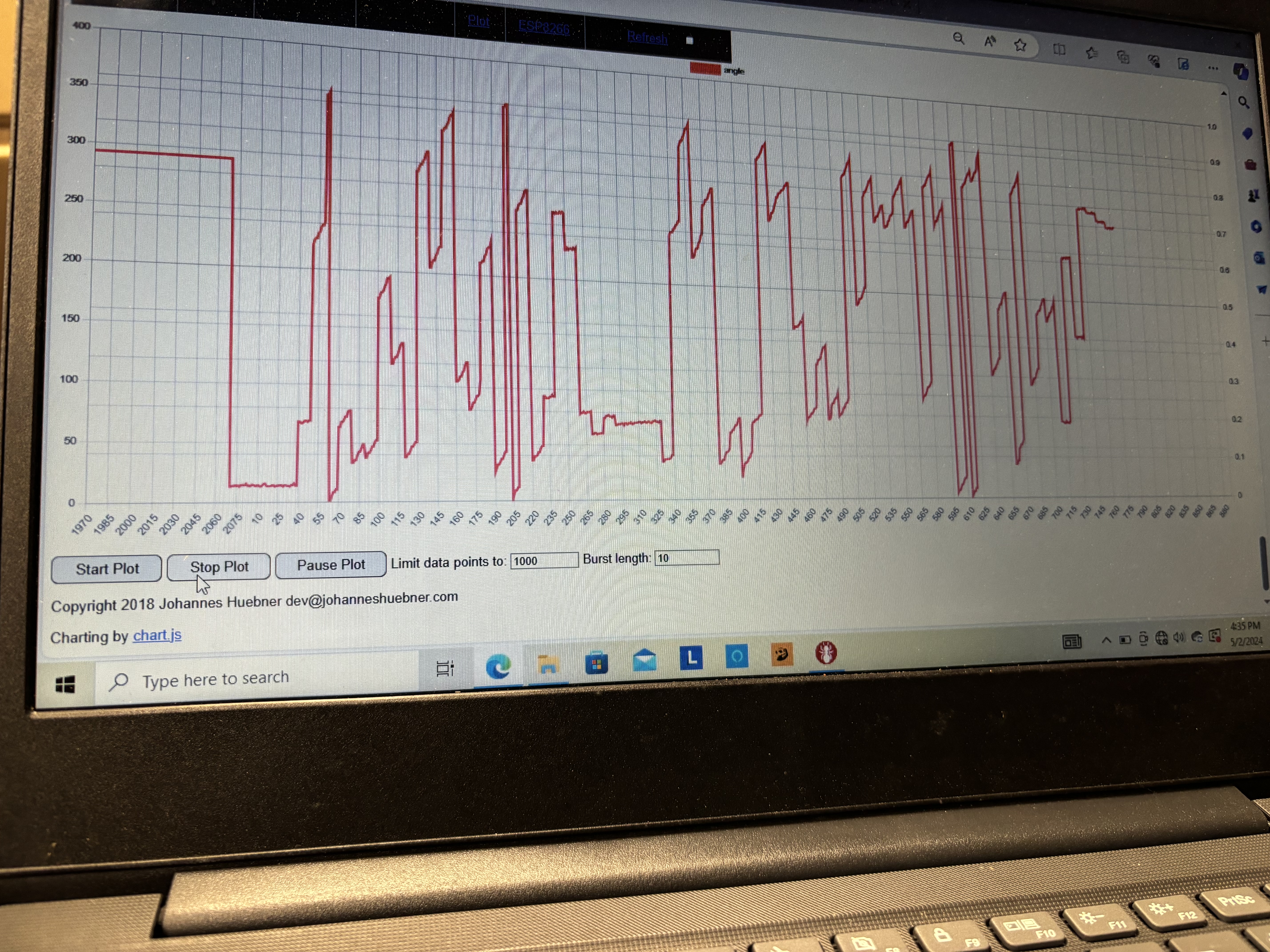 You can also hear in the video that the motor is making a knocking noise until it runs away, I’m not sure what this is.