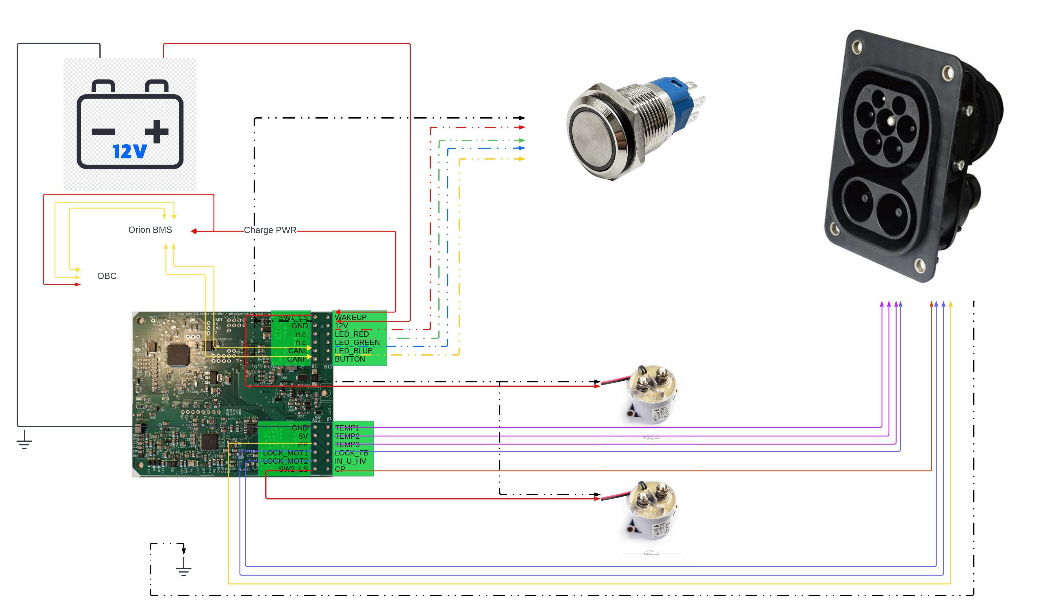 - wire the ground of the charge port temperature sensors directly to Foccci, because this is a sensitive analog measurement ground.