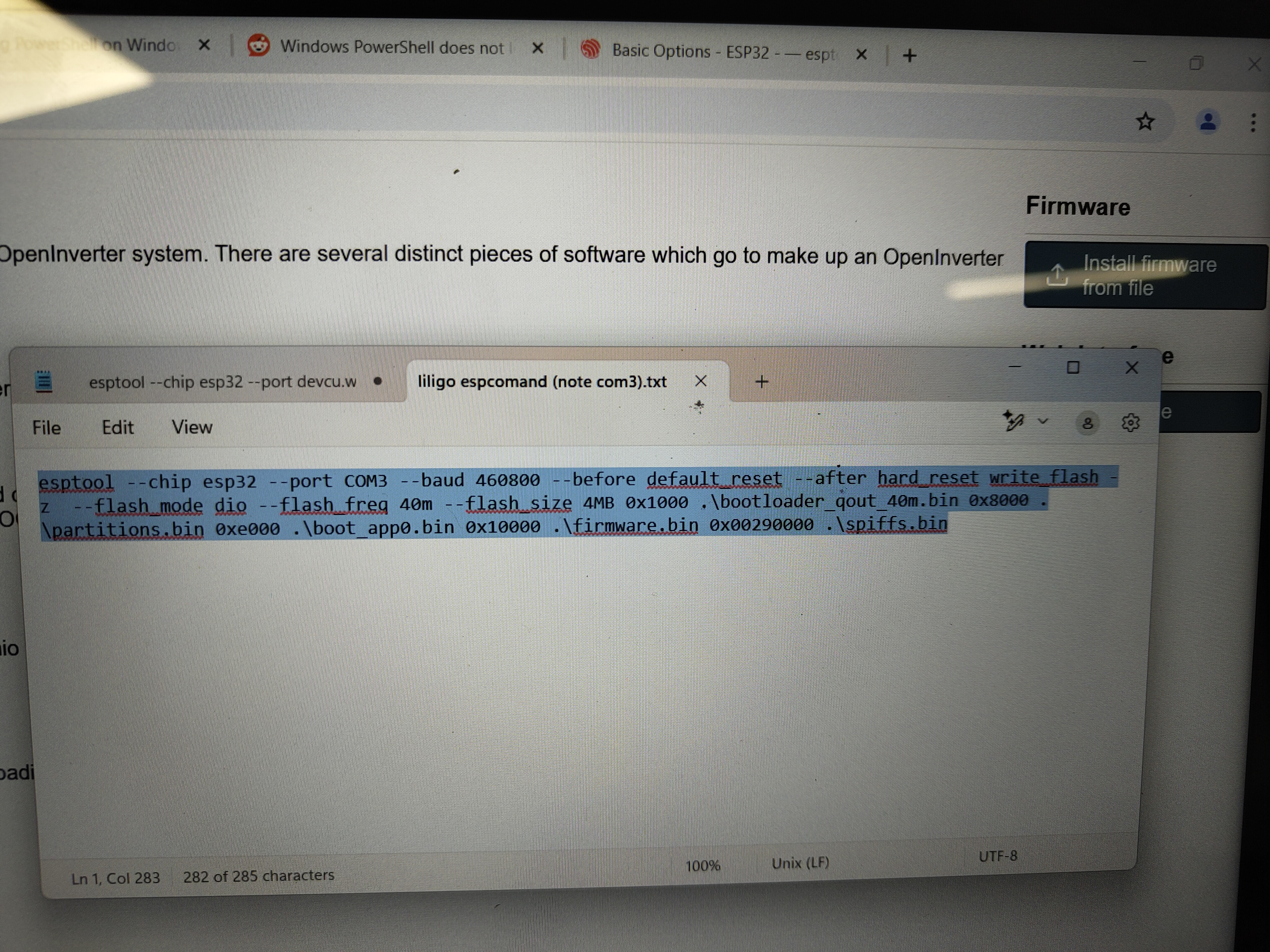 Then after downloading the zip files (can't remember where I put them at the moment will post back) and working out which port I was connected to......windows version of esptool syntax used COM port.