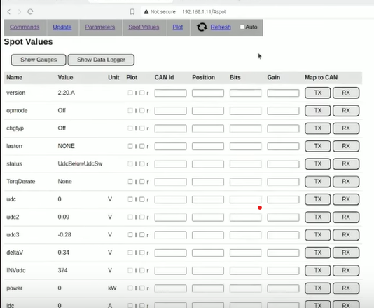 I hope you’re doing well. I’m currently running a Nissan Leaf drivetrain (inverter, PDM, and motor) with a ZombieVerter as the VCU. I’ve attempted to access the gauges through the "Show Gauges" option in the web interface, but after being redirected to a new tab, nothing is displayed.