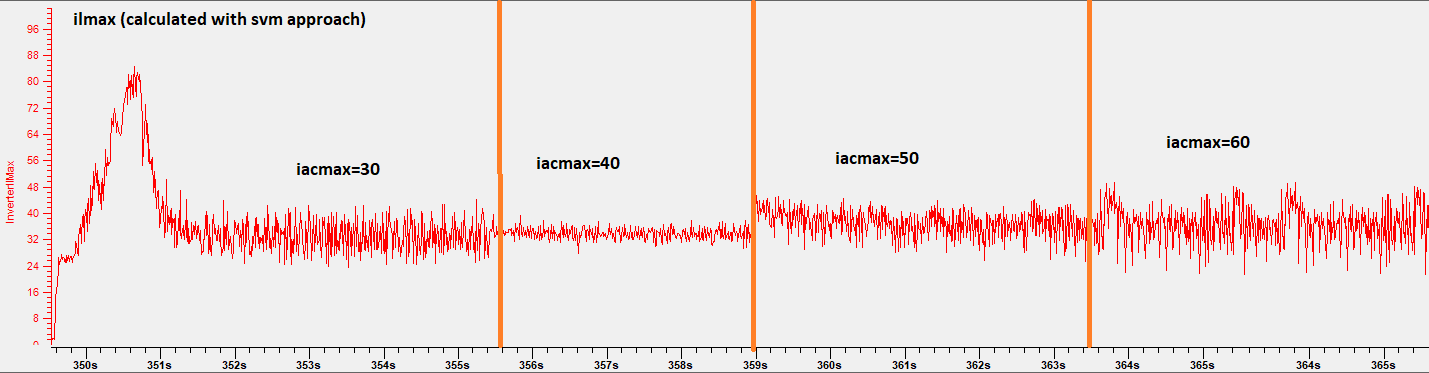Plot shows that the limit kicks in and out 5 times over one current period. So there is some point when running near iacmax where the torque starts rippling. I was wondering whether it would be better if we used this in the LimitCurrent():