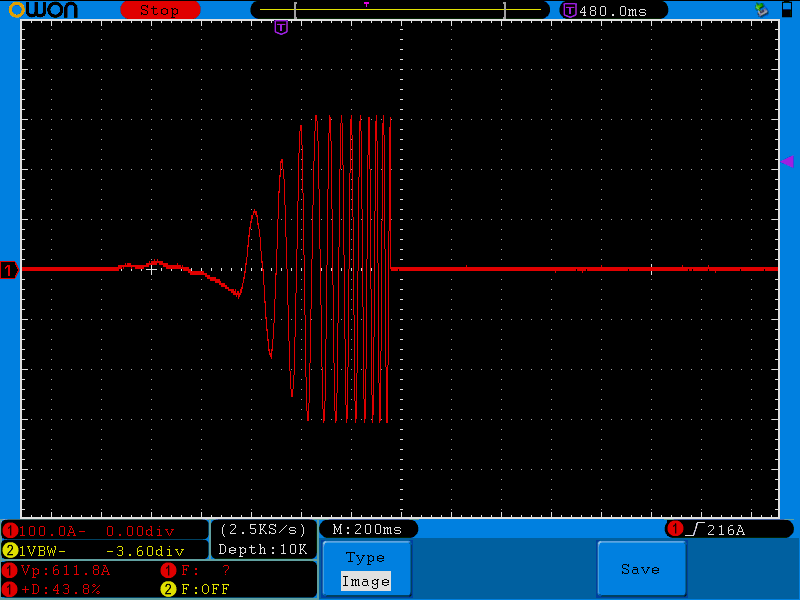 This signal confirms the current clamp measurements. There is no overcurrent.