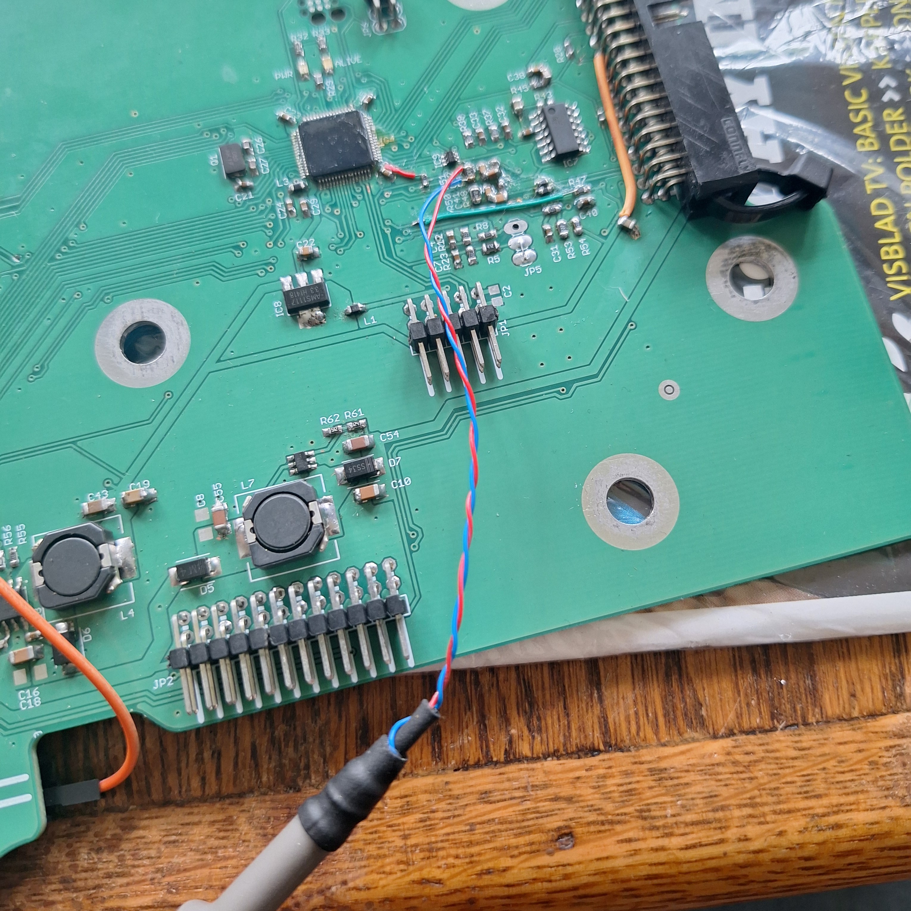 Measured the current sensor signals in the car. Did not do this before because, its difficult to measure the signals because the PCB is in a awkward place. Attached two small wires to the scope probe so that I can solder the in place.
