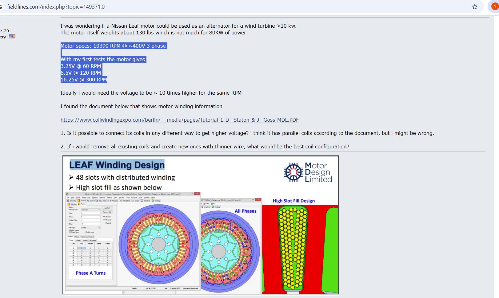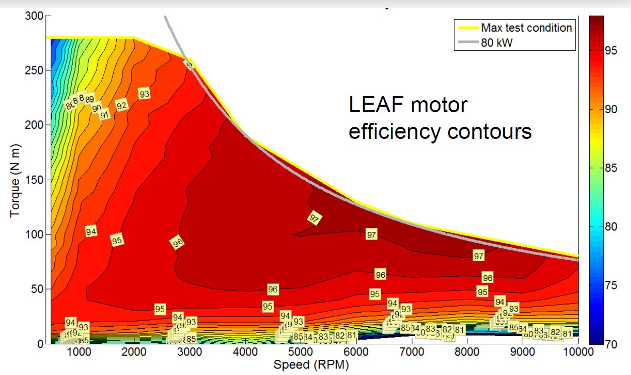 Simply based on the motor, if a 40 lbs motor (ME1507) can output around 10 kW continuous at 58V, then a larger 120 lbs Leaf motor can output 10 kW continuous. No?