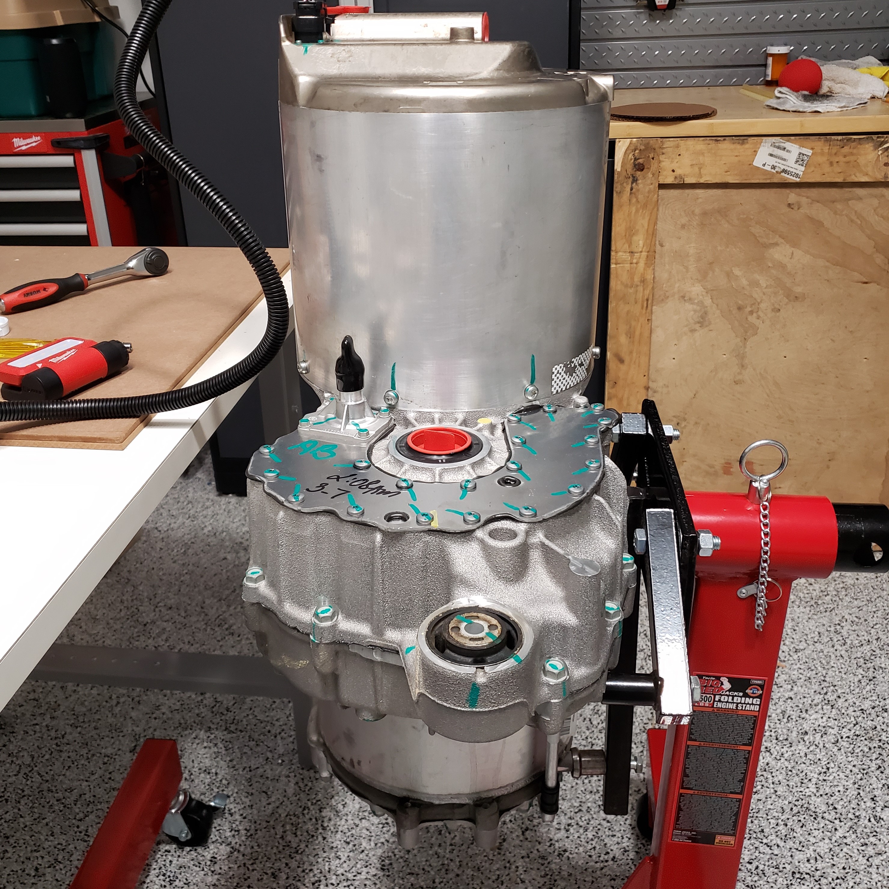 So one of the things that I like about this project is I can build out and test my new drive train without needing to destroy my perfectly running car in the process. So for the past few weeks, I have been shopping, and assembling the stuff I would need to setup a solid test bench. Hat tip to Roadstercycle for his YouTube video of his bench test setup, it gave me a real good idea of what I needed to do to get a bare bone system up and running.