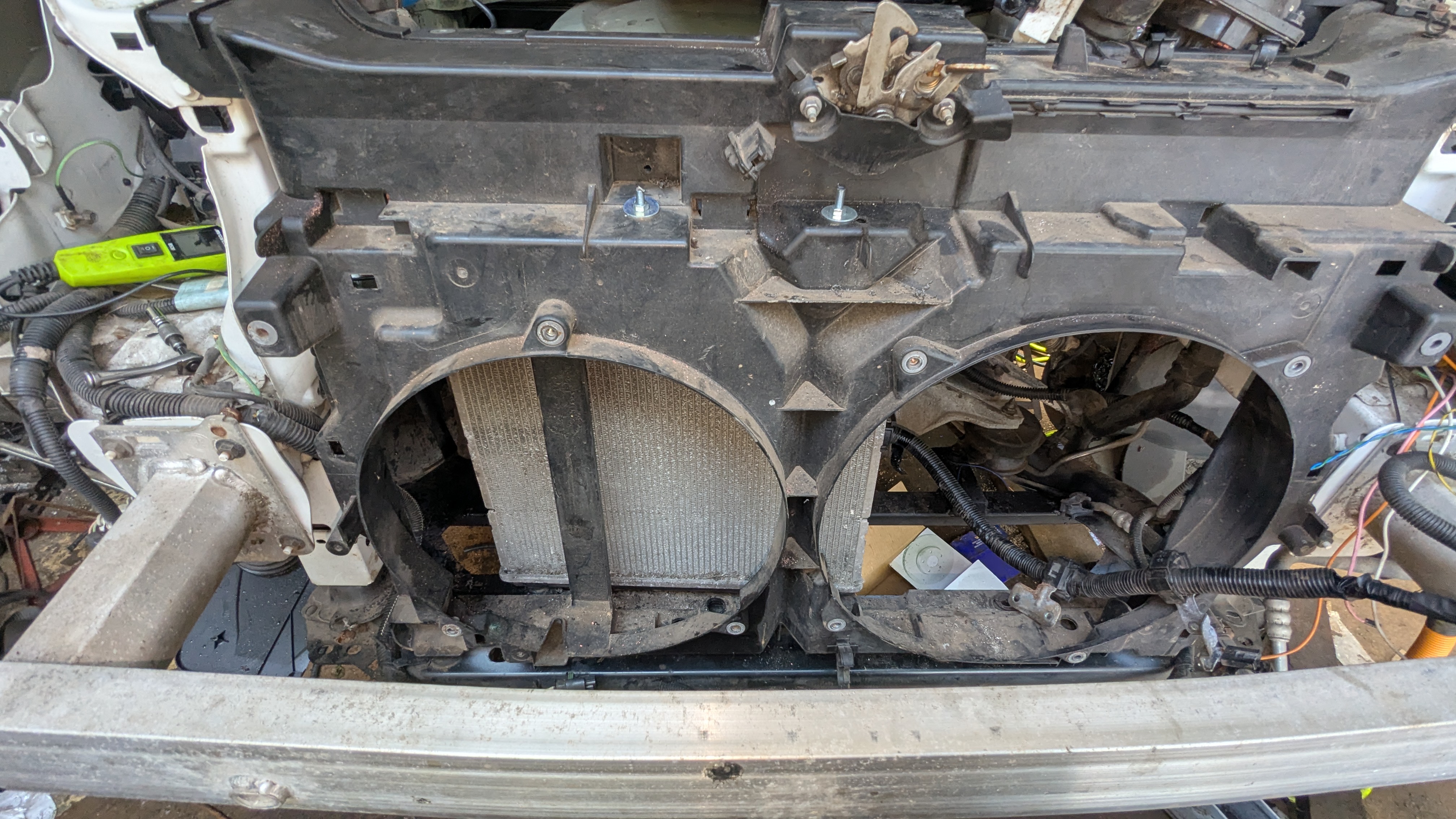 Project update. I've fitted a radiator from a 2008 Peugeot 207 1.4D. The Expert radiator was blocking the charge ports. The new radiator has been moved left to fit the charge ports in. System filled with anti-freeze and bled. I'm using the Allied water pump and a combination of Allied water fittings and Leaf water hoses. It's not pretty but it's functional.