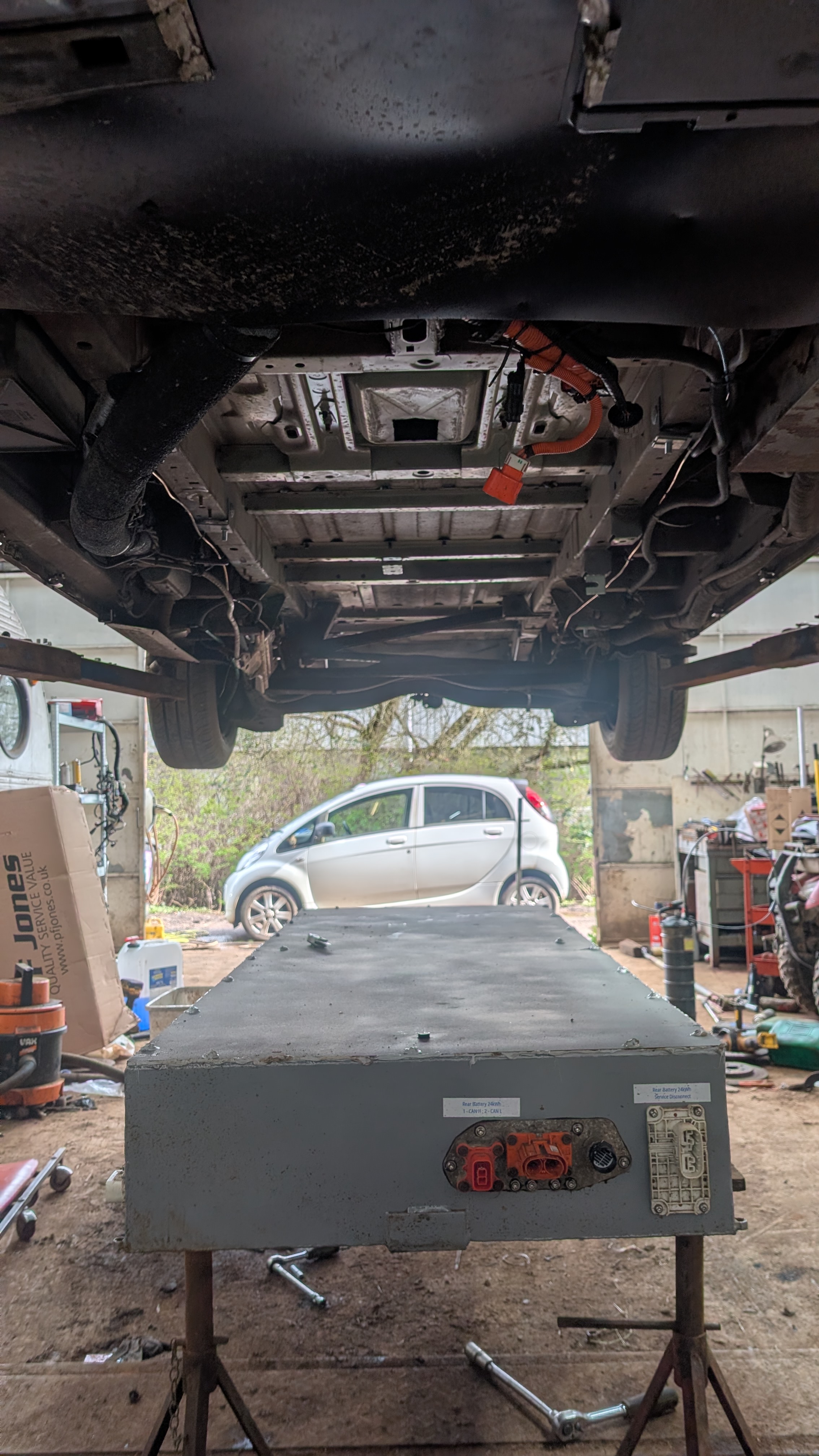 Hello all, a quick introduction. I'm based in Galashiels, Scottish Borders and have an independent repair garage that I have operated for the last 20 years. I did my first conversion around 2008 http://www.evalbum.com/1319. My current project is a 2009 Peugeot Expert LWB (L2H2) that was originally sold by Allied Vehicles in Glasgow as an EV. The drivetrain and batteries have been removed to be replaced with a 80kW Leaf stack and 2 Leaf batteries underneath in a custom battery box.