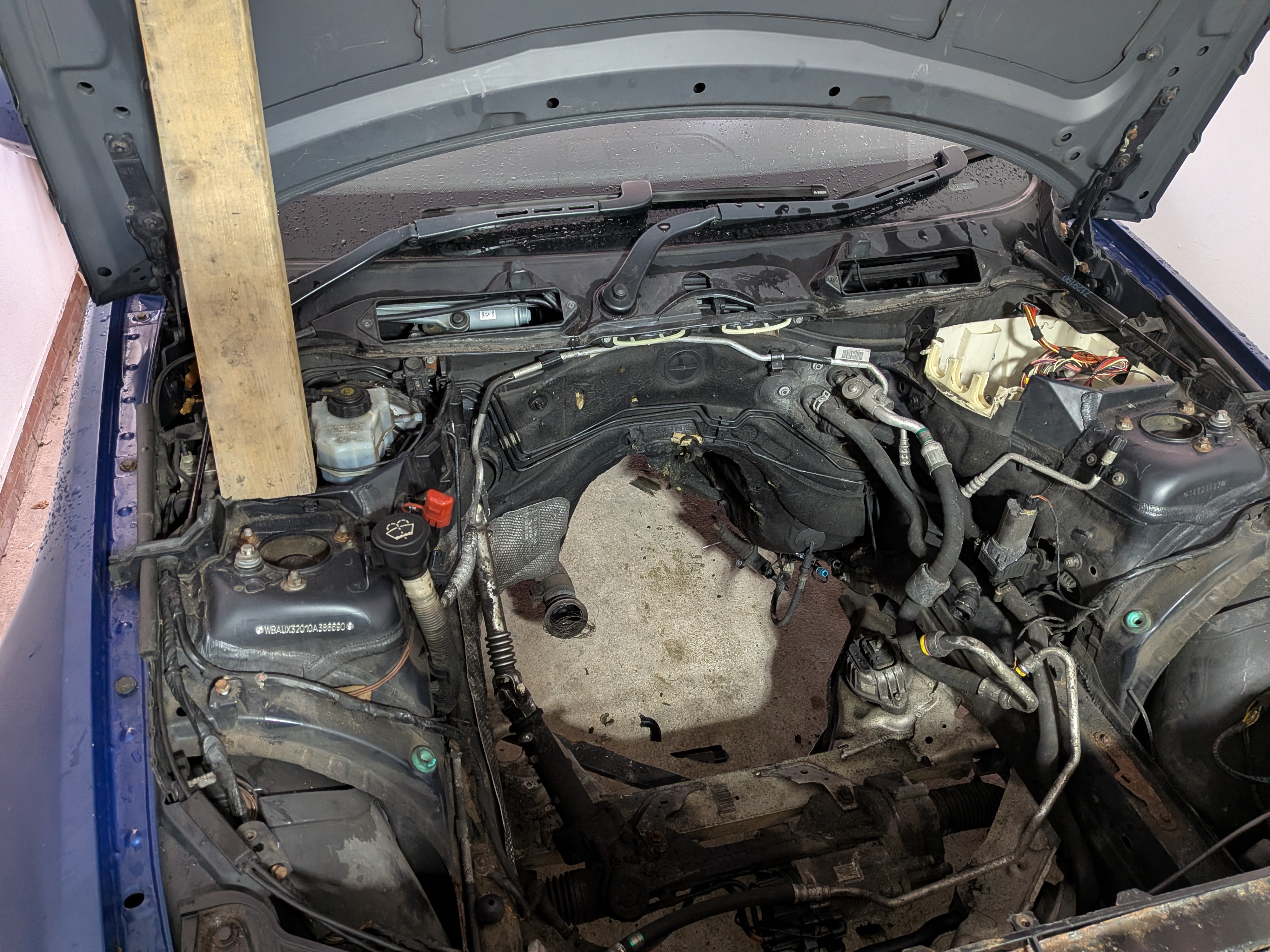 I was so focused on making sure the engine and gearbox cleared everything on their way out that I somehow didn't notice the end of the engine hoist colliding with the bonnet until it was too late so theres a new dent in it which is shame :(