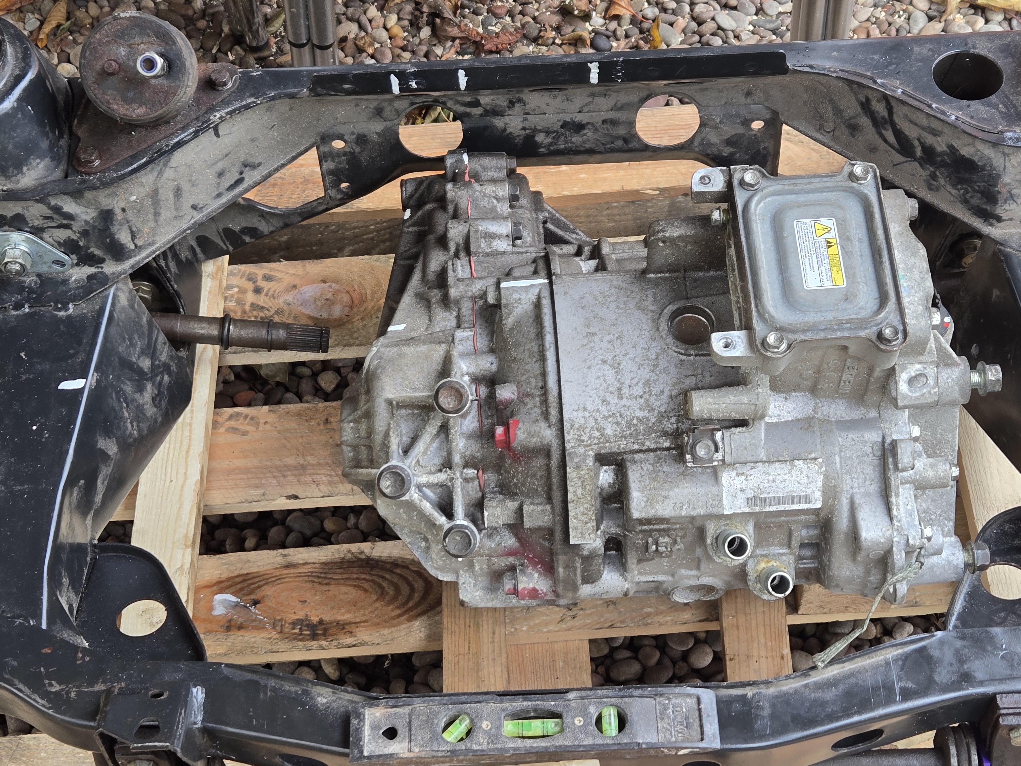 Mitsubishi Outlander PHEV rear drivetrain came today so I offered it up to a spare NOS metro A series engined subframe I had in stock to see if it fits. I think thats a yes, looking at these images. Even the driveshaft angle is the same (or maybe even better actually as the offset is less than the OEM ICE motor):