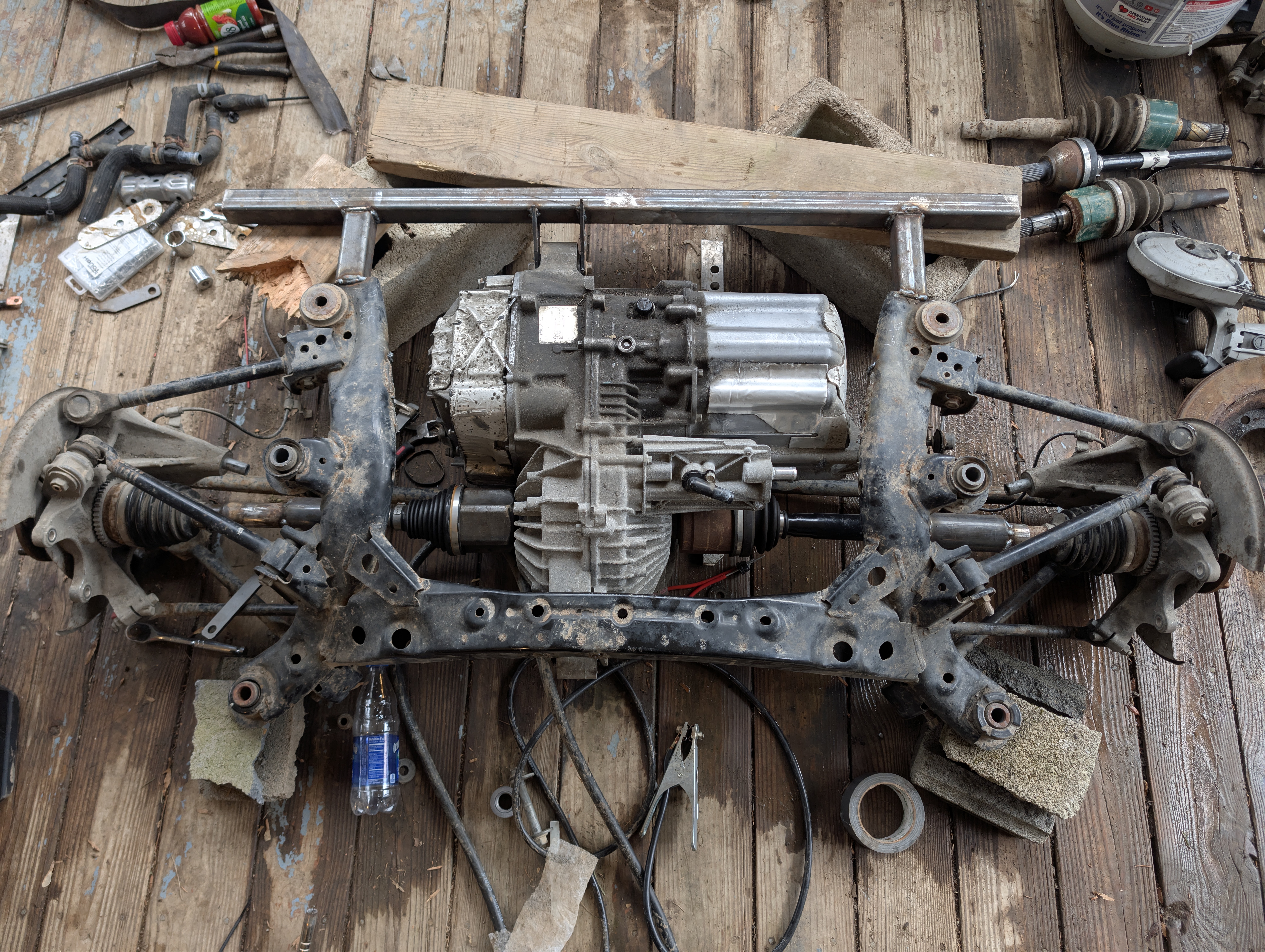 nearly 7 years ago i started a conversion on a Mazda rx8 to electric using a 2015 Toyota Avalon hybrid transaxle and two Prius prime lithium battery's. over the years came a new job which caused less time to work on the project, a LLC I've started for electric car conversions. well update for the past year i had zero testing on the EX-8 and started work on my hybrid diesel system using kia 2015 optima hybrid MSG for use on charging/driving the car using diesel as a limited range extender. this quest involved tons of hours of testing, destroying several prius 3rd gen inverters due to my mis connections of the battery power input. now with proper wiring harnesses for the msg's and prius inverters im planning on using one for the charging of the hybrid battery. full two prius prime hybrid packs at the nominal voltage of 360 and i think the cells tested at or around 25ah from 4.10 down to 3.35. running both pack together will give us roughly 16kwh 360 volts. now to present day work i found a cheap tesla SDU at a local junk yard from a totaled tesla. im posting a update to the current tesla sdu and mazda rear subframe. also would like to note that my old youtube channel wont have as many updates on this project and since the LLC creation im using a new Channel AppalachianEV with the videos of this project car. Big thanks to a few members of the fourm on helping with the control board. Will be posting a video soon.