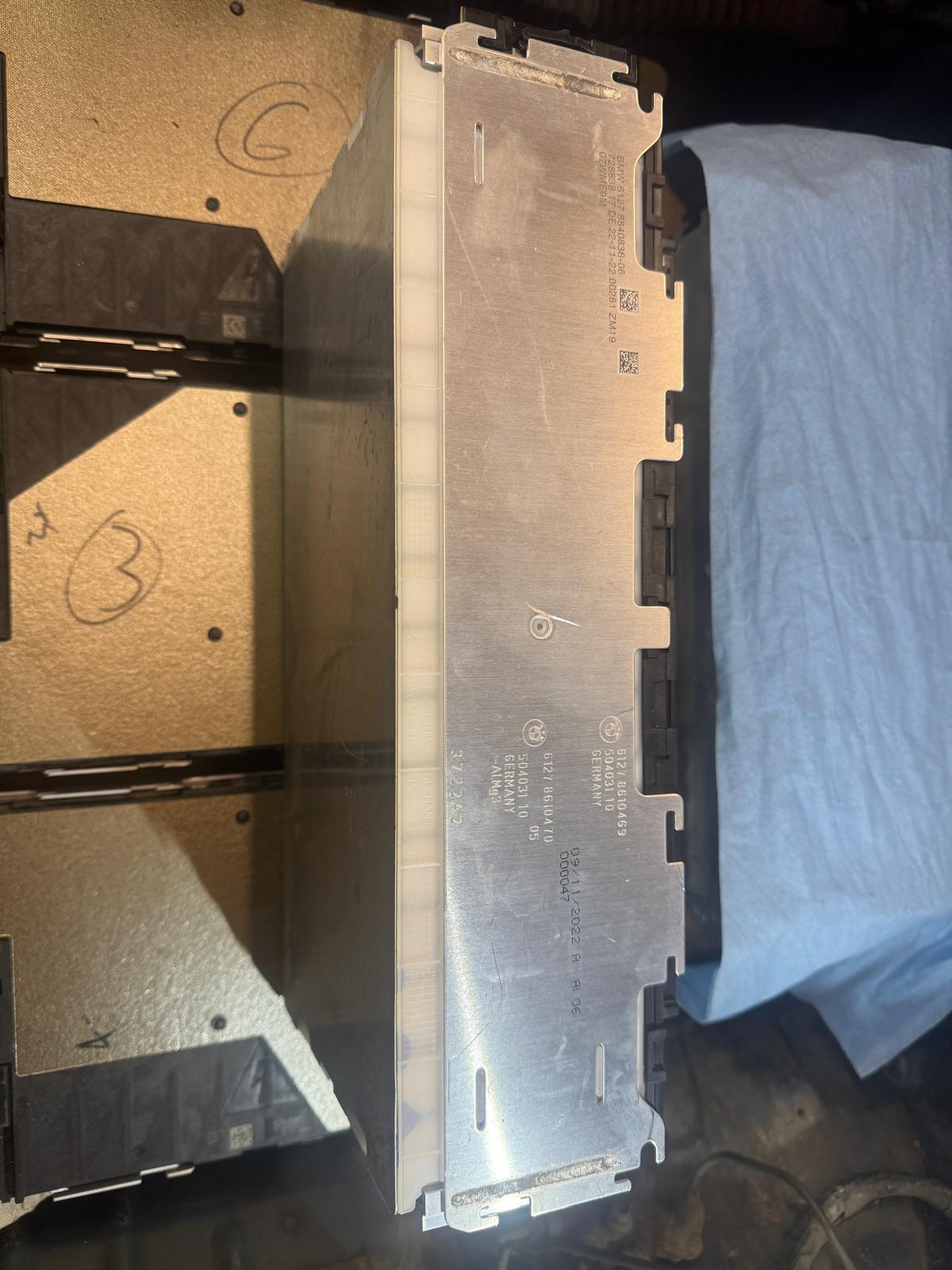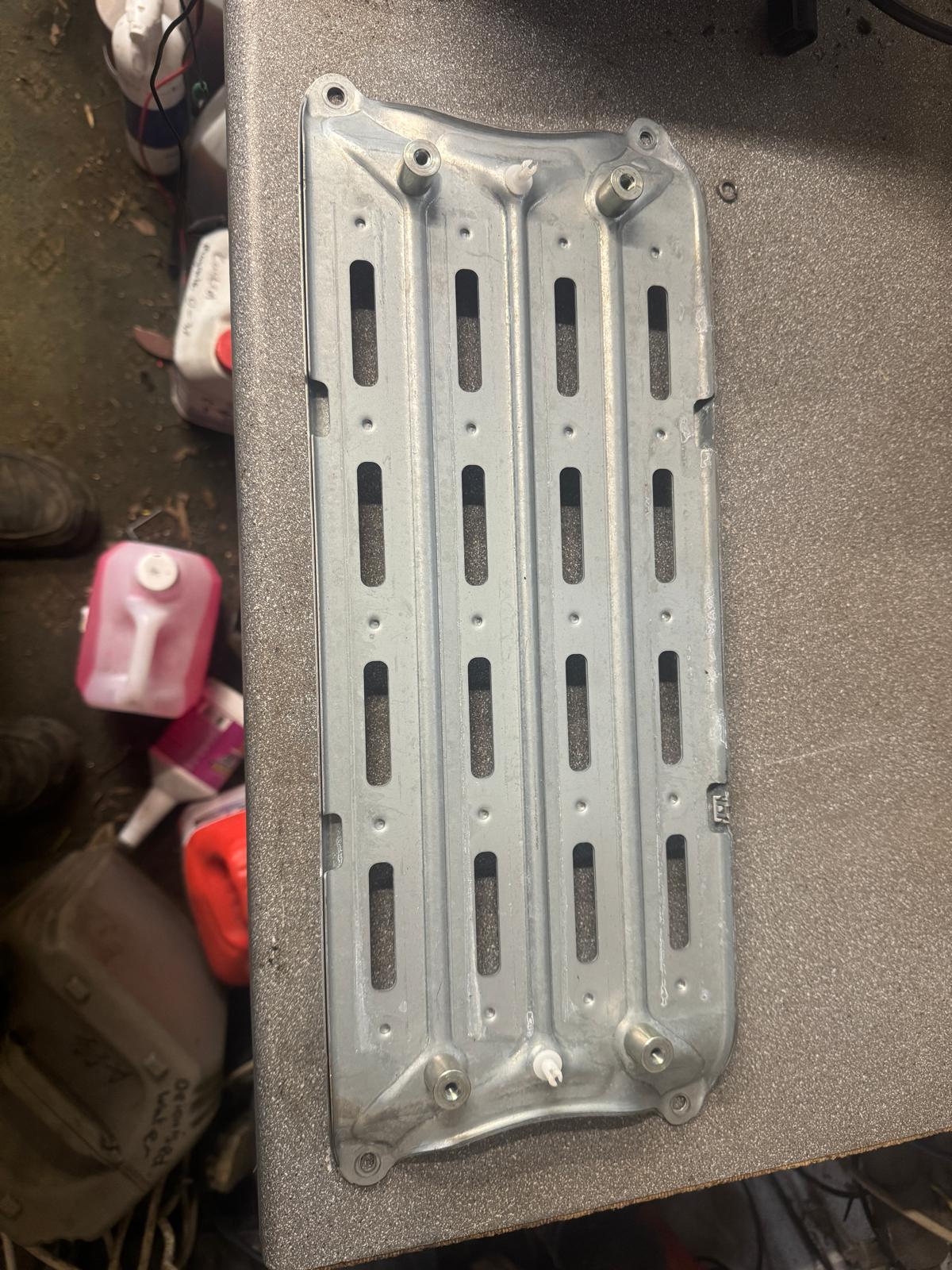 As a side note, when i look at what I l have left of the original mounts, there is the tray (pic) and between that and the battery module was the heating/cooling insert, but this cooling tray was a very lite build and i'm pretty sure it bore no weight. When i put the module on the tray. there is an air gap, all of which suggest the battery modules are just fine supported via the 4 mounting holes in the end heat sinks.