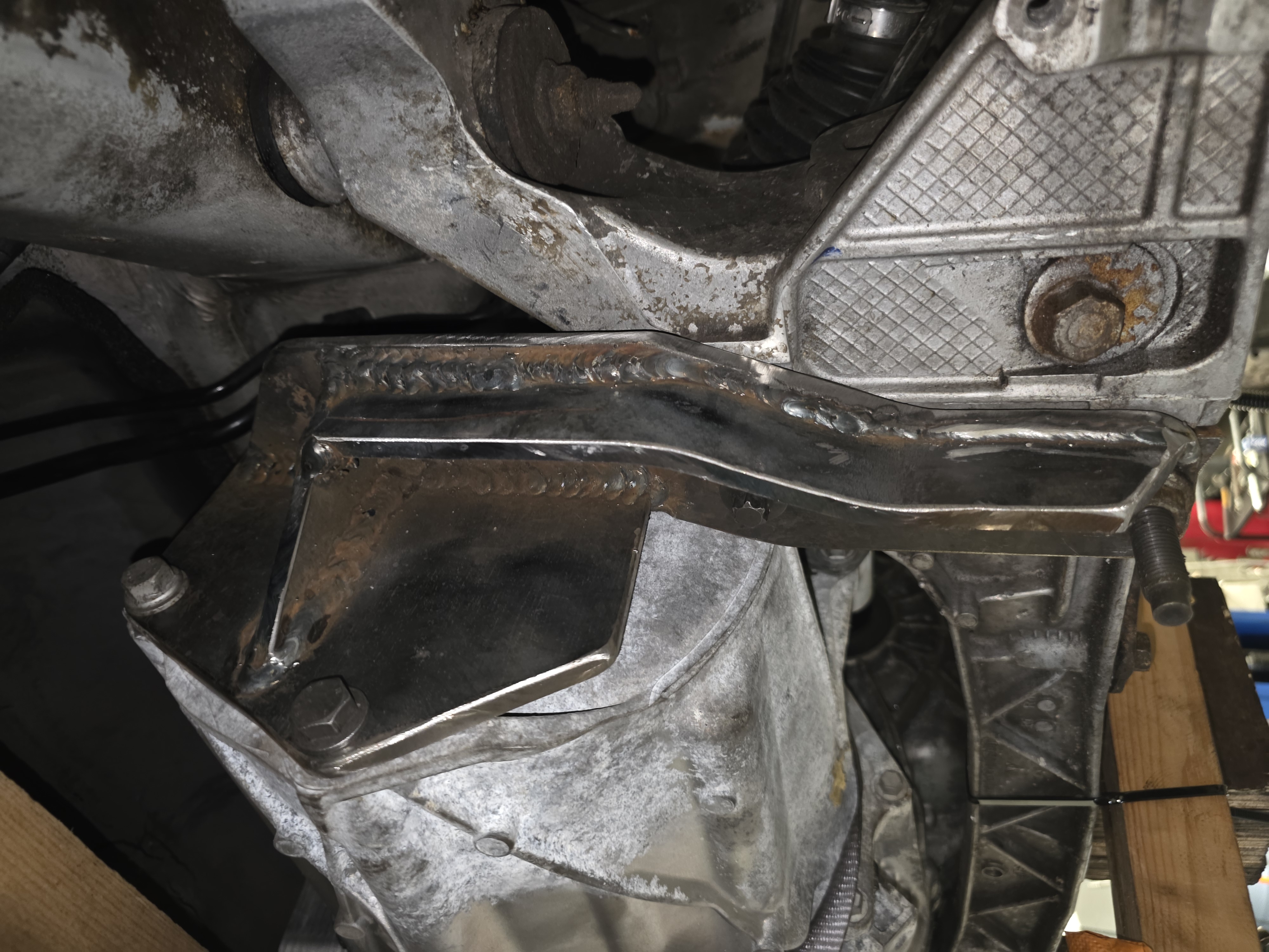 Okay it's there now, but I'll have to rebuild all the mounting points as the anti-roll bar will kick in, the electric motor is too low, ground clearance is a problem, I don't want the motor to be the lowest point. but it'll do.