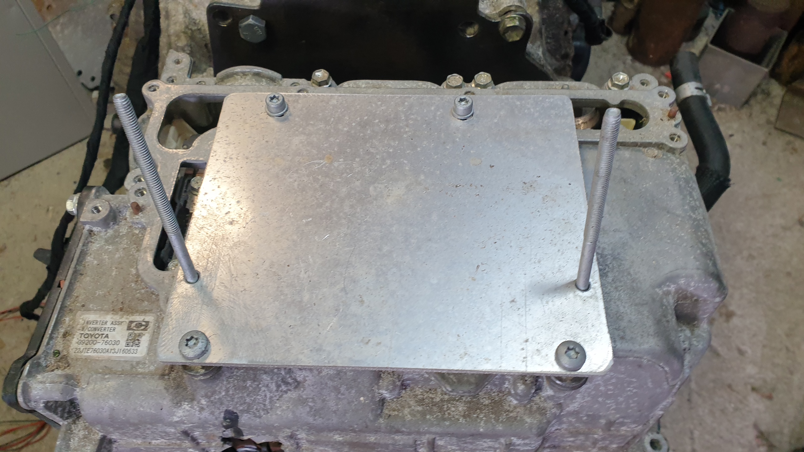 VCU mounting plate for the prius inverter. Will be a double stack on here. Zom and relay box.