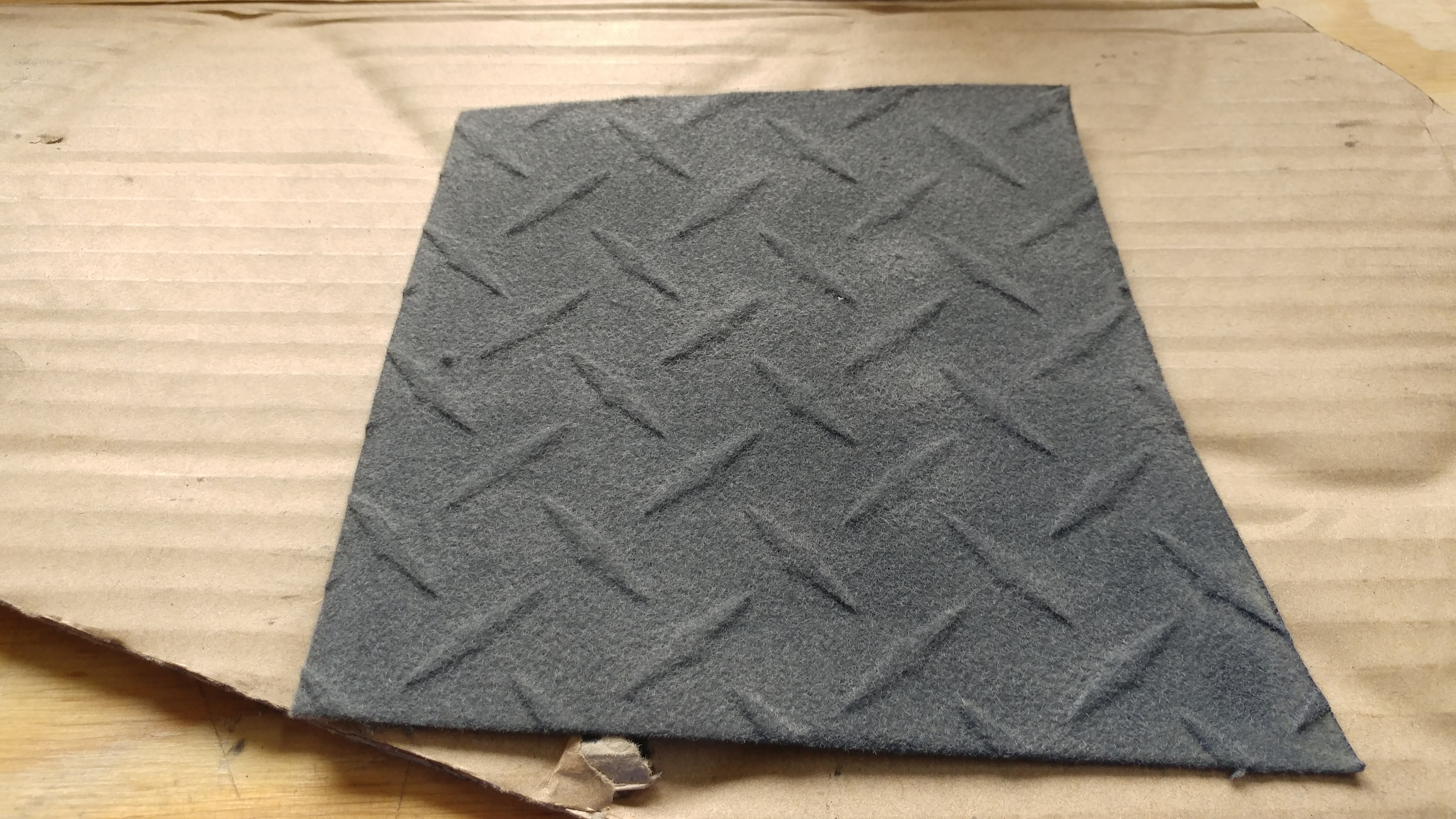 All the shiny aluminum plate will be covered with charcoal grey flocking that will give it a suede leather look.