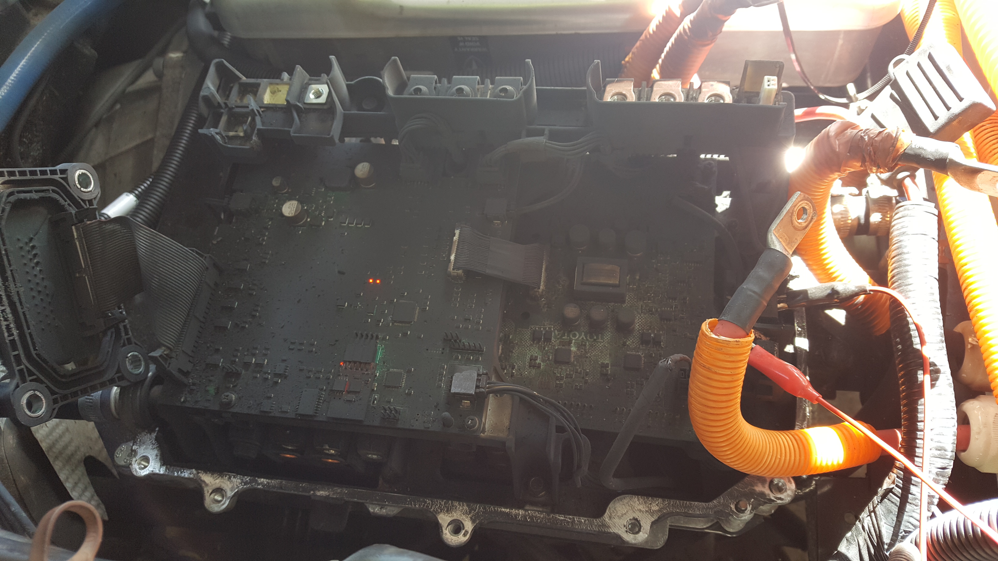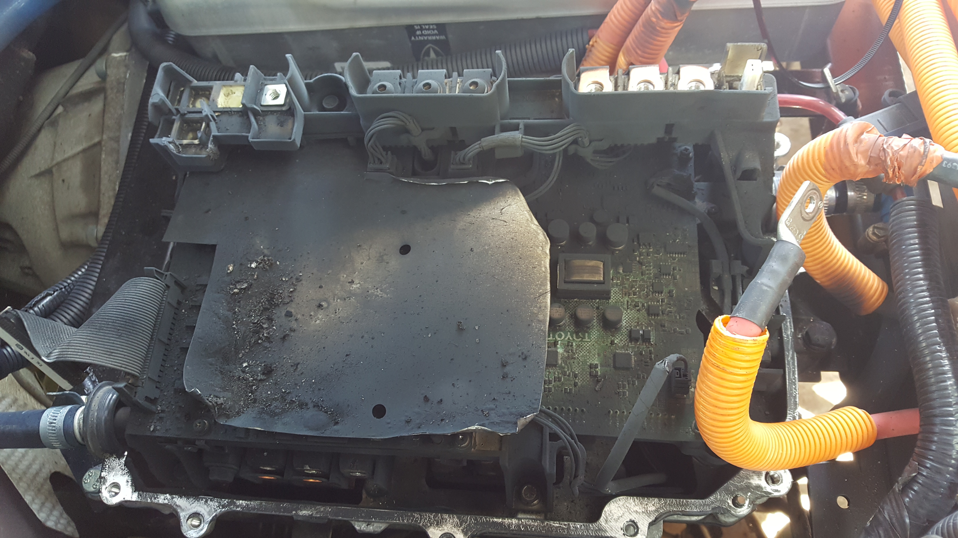 It's flashed over to the inverter casing, but I thought the HV battery system is supposed to float from the casing? Or maybe I haven't been paying attention.
