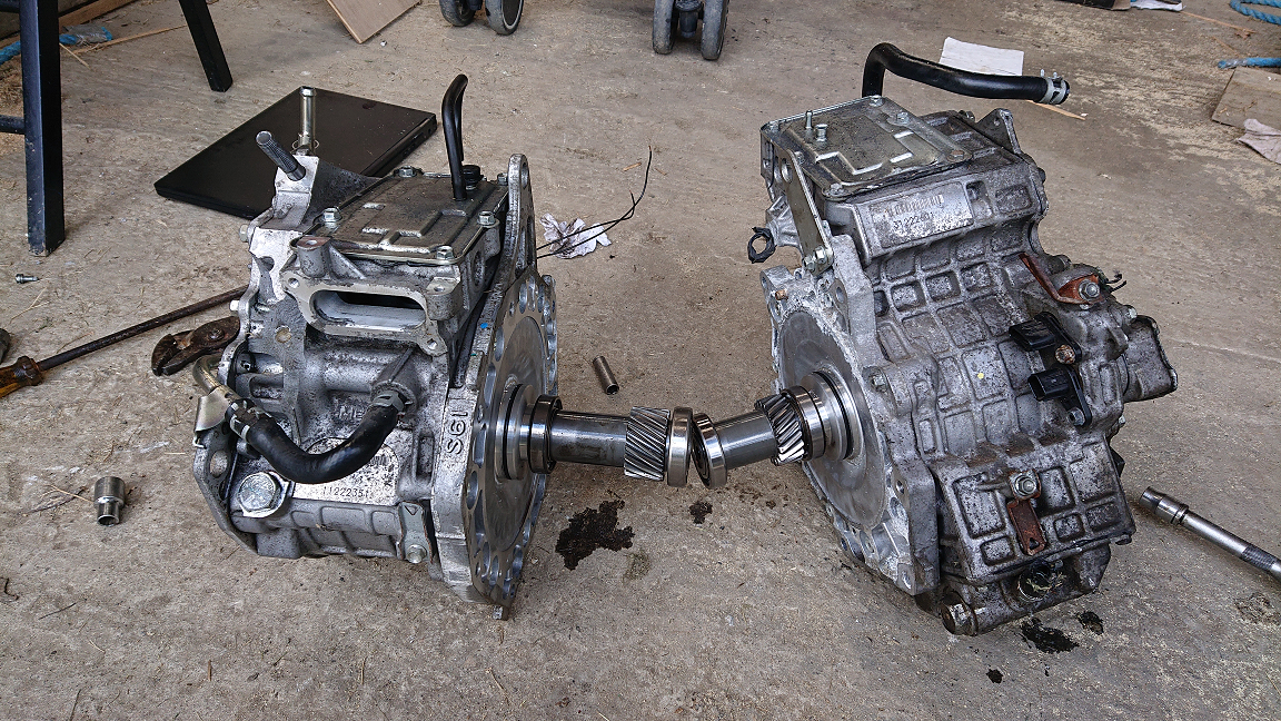 The propulsion system will use two motors with a propellor each as this allows for great manouverability and even the ability to spin on the spot by running one motor in full forwards and the other in full reverse. I have a pair of lynch motors and controllers sat on my bench salvaged from an early EV conversion but I was concerned about whether they would have enough power for cruising up river, they are also 50v controller max or 72v motor max so I would have to split up my HV pack to provide 44v rather than 320v as standard so I have sourced a Mitsubishi Outlander gearbox and inverter. I will try to figure out the CAN commands for the inverter and make a controller from a Teensy or Arduino to drive it but failing that I will replace the logic board and go that route instead.