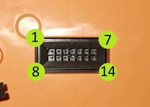 Pin 1 = Cell 1 positief Pin 2 = Cell 1 negative Pin 3 = Cell 1 negative Pin 4 = NC Pin 5 = Cell 10 positief Pin 6 = Cell 10 positief Pin 7 = Cell 9 positief Pin 8 = Cell 2 positief Pin 9 = Cell 3 positief Pin 10 = Cell 4 positief Pin 11 = Cell 5 positief Pin 12 = Cell 6 positief Pin 13 = Cell 7 positief Pin 14 = Cell 8 positief