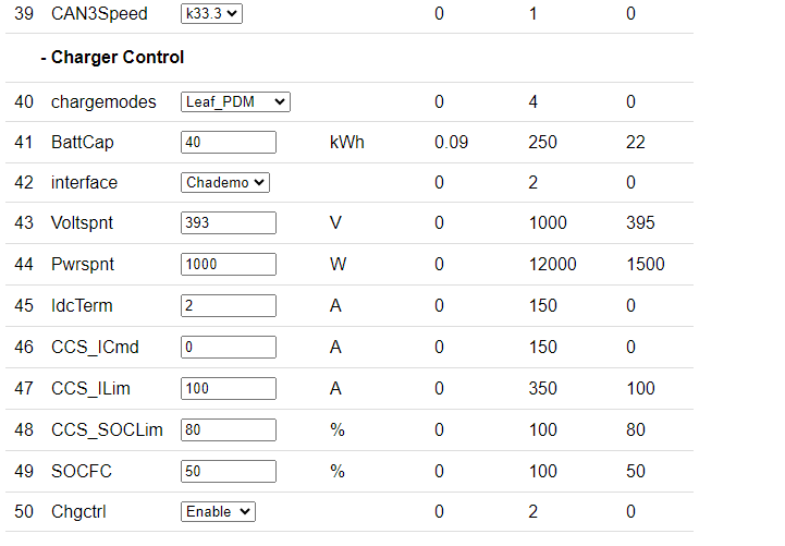 Thanks for the response, are you able to share with me your screenshot settings, the pdm I have is from a 2013 leaf, I'm struggling to know if it's compatible with the zombie or not... When I power the pdm with 12 volts it transmitts CAN-Bus (0*390. 0*393.and 0*678) but, the evse from the ...