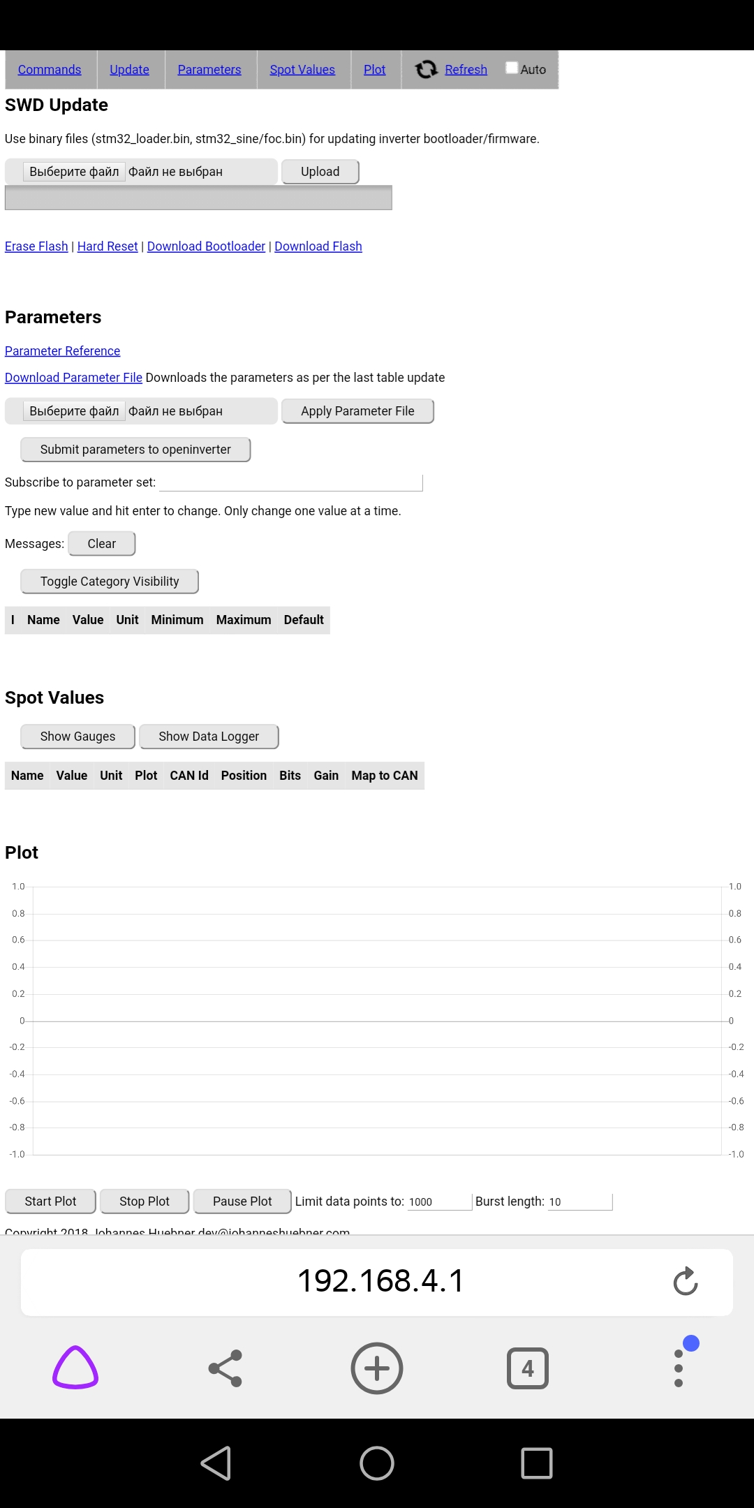 Hello, alas, I am not a programmer and some things are difficult for me to understand, but I have achieved something by reading the wiki and the forum, but now I am at a dead end!) I put together a board and it seems to even work, but it's not quite accurate) After flashing version 5.0 of the Rev 3 board with the stm_32. hex and stm_32 foc.hex file loader, the LED flashes well. The ESP8266 Wi-Fi module was also programmed . The connection to 192.168.4.1 was successful, but there are no settings in the interface. What did I do wrong, where should I look for my mistake?