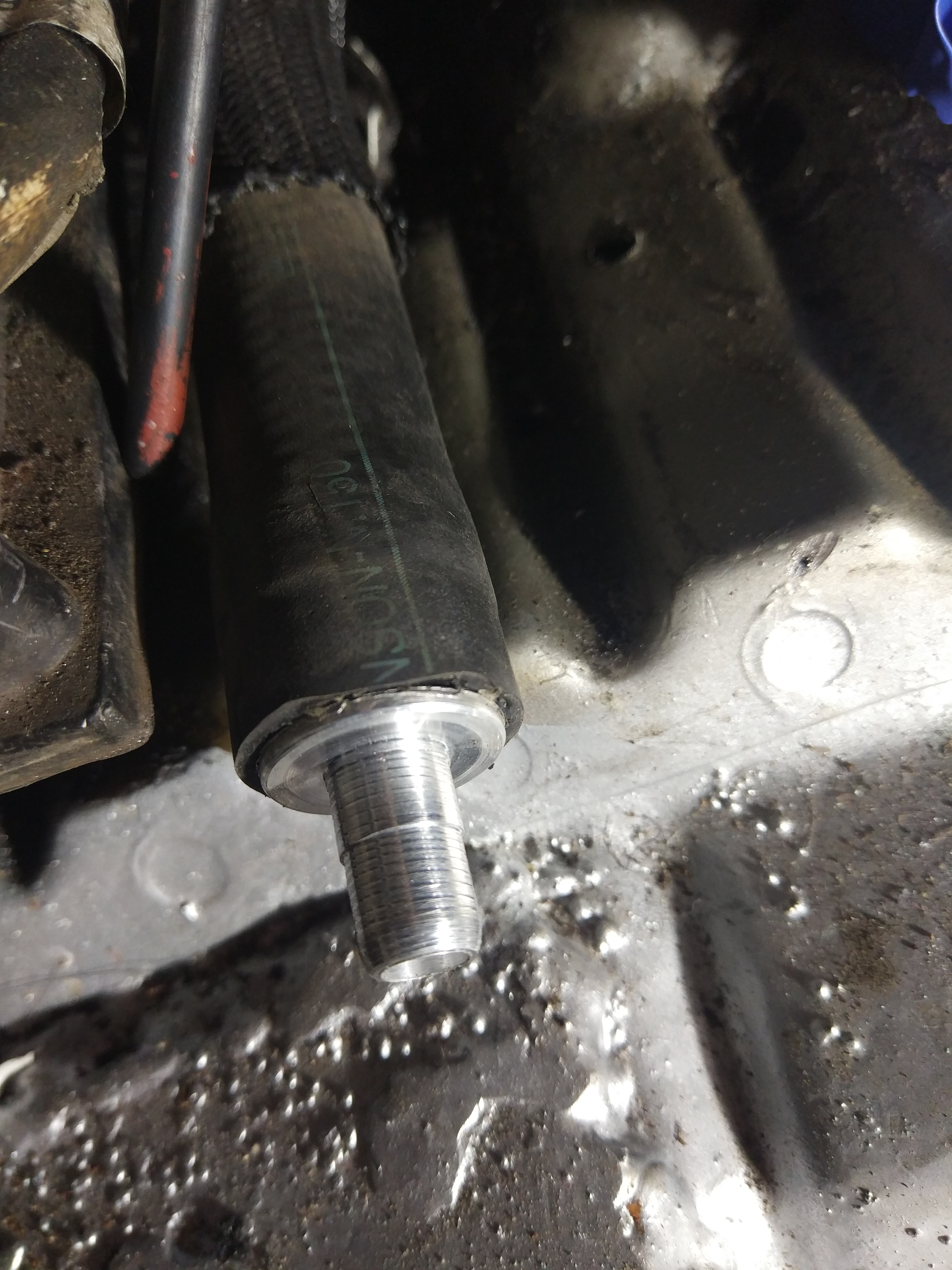 I decided to not waste 18mm coolant hoses and reduce supply hoses to 10mm. They only bring coolant to the loop and are not needed in normal action. I couldnt get reducers anywhere so i made my own. Two are for supply of the coolant loop and two to supply webasto heater loop. The last one will be attached to T piece in Webasto loop. I will use the steering pump oil tank, the one with red cover, as webasto fluid supply.