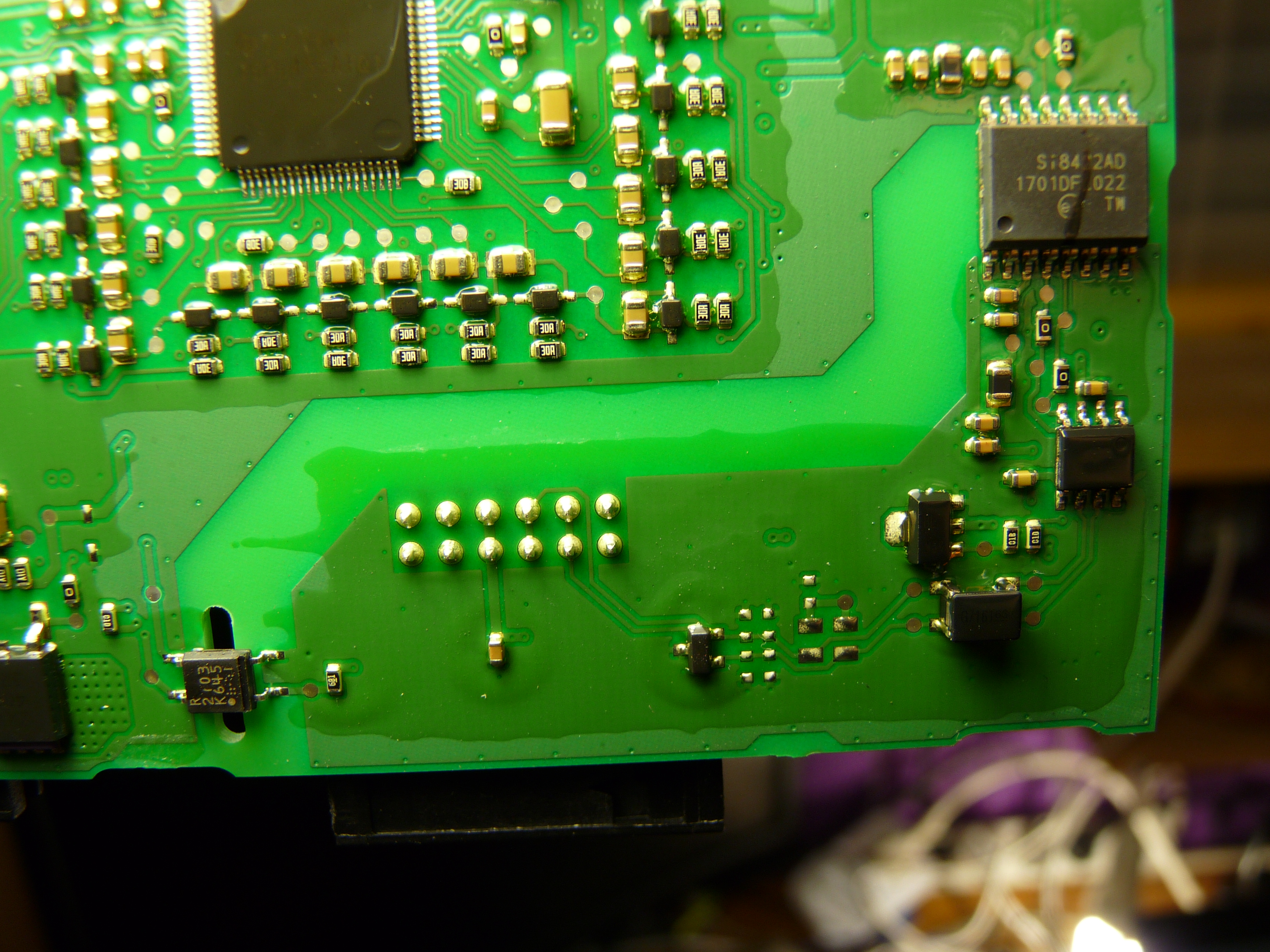 On the module side, I'm only feeding 5V to the power rail that connects to the Si8422 dual channel isolator and that seems to power the MCU, as it transmits things. Nothing is connected to the module connector.