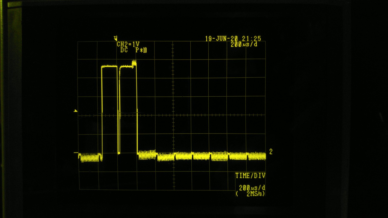 Pictured is the TR8 transistor output when a 10% 5kHz PWM is generated by the atmega328.