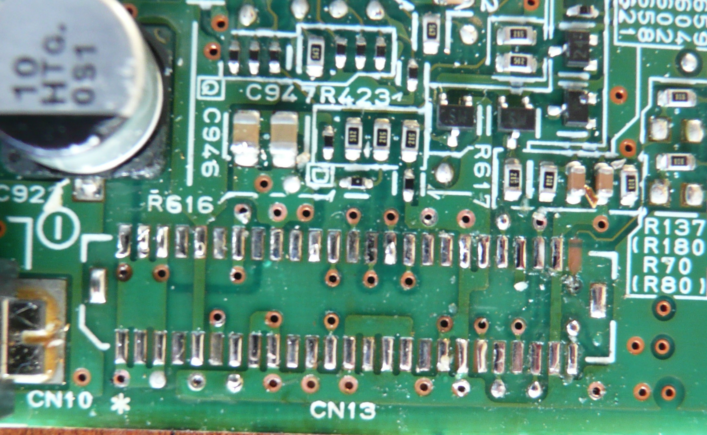 I was hoping that the driver board would be similar to that Schematic that's getting around but nooo.I have enough to do what I wanted to do but the niggles got me - so I started the job of removing the 50 way connector to confirm where the "Not connected" pads are and help look into the rest. Well that JST connector is tough bugger, and Toyota used lead free solder to make life harder. I was beginning to think this was a bad idea and would end horribly but cranking up the hot air gun an extra 50 degrees and reducing the connector body - mangling - got me there. Testament to the PCB that I only removed one pad, pin 50, and no other damage, very good considering the length of time and amount of heat I poured into it.