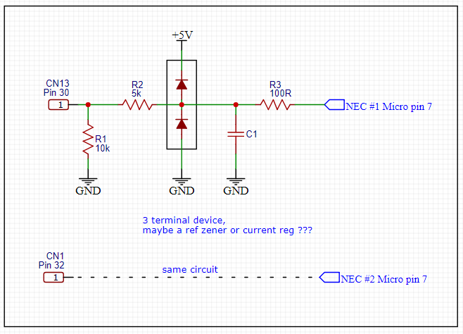 Perhaps that 3 terminal device is a current source / zener which might make pins 30,32 inverter temperature ??