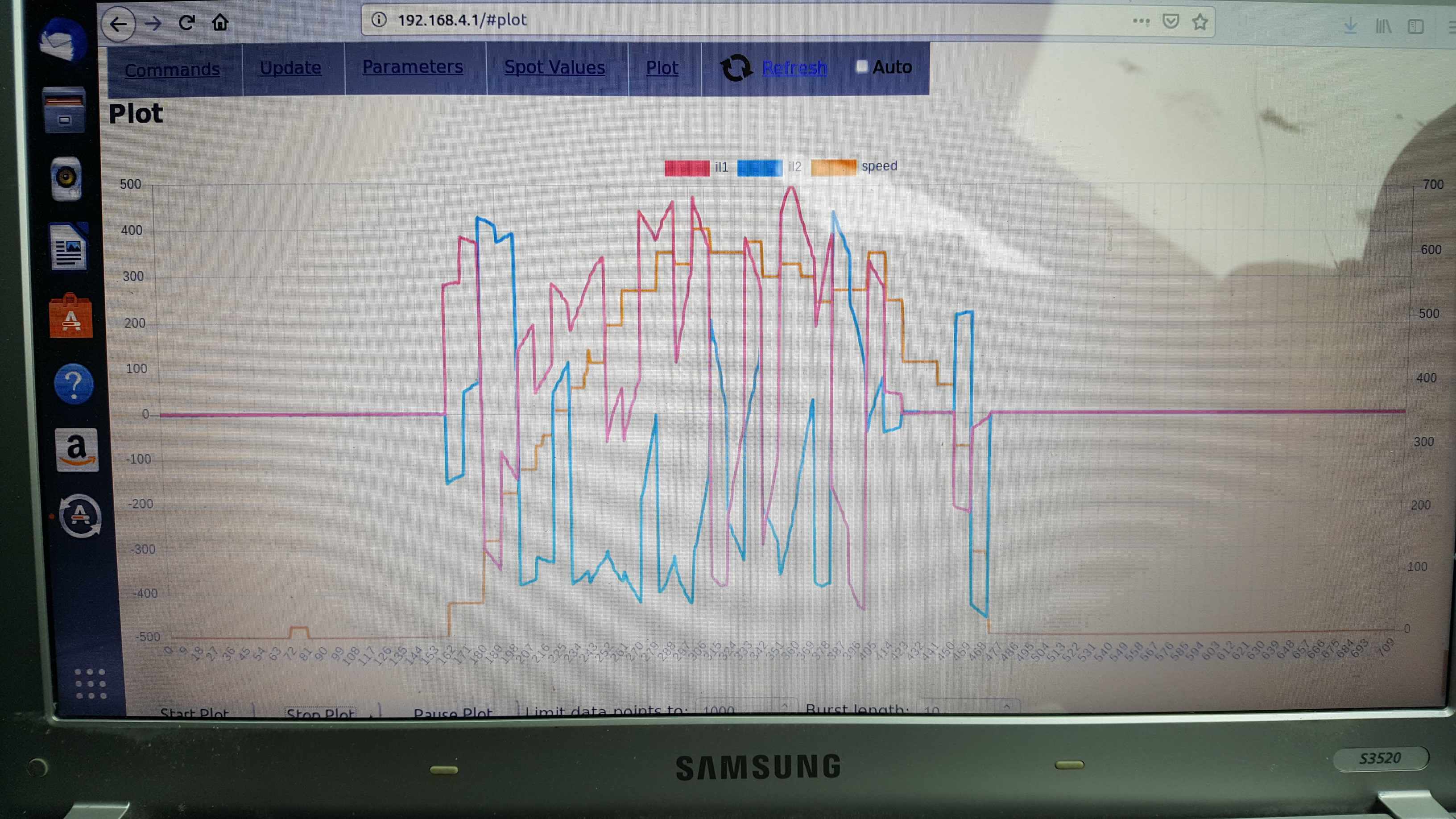 I have attached a graph of IL1 and IL2 vs Speed for first gear and gradual full throttle pedal travel. In neutral I can rev the motor to 6000rpm no problems and regen it to a stop. If I try and start in a higher gear the motor amps max out and the car does not move. I'm going to trailer the car back home in the next few days as it will be easier to do tests when it's here. Any help much appreciated:)